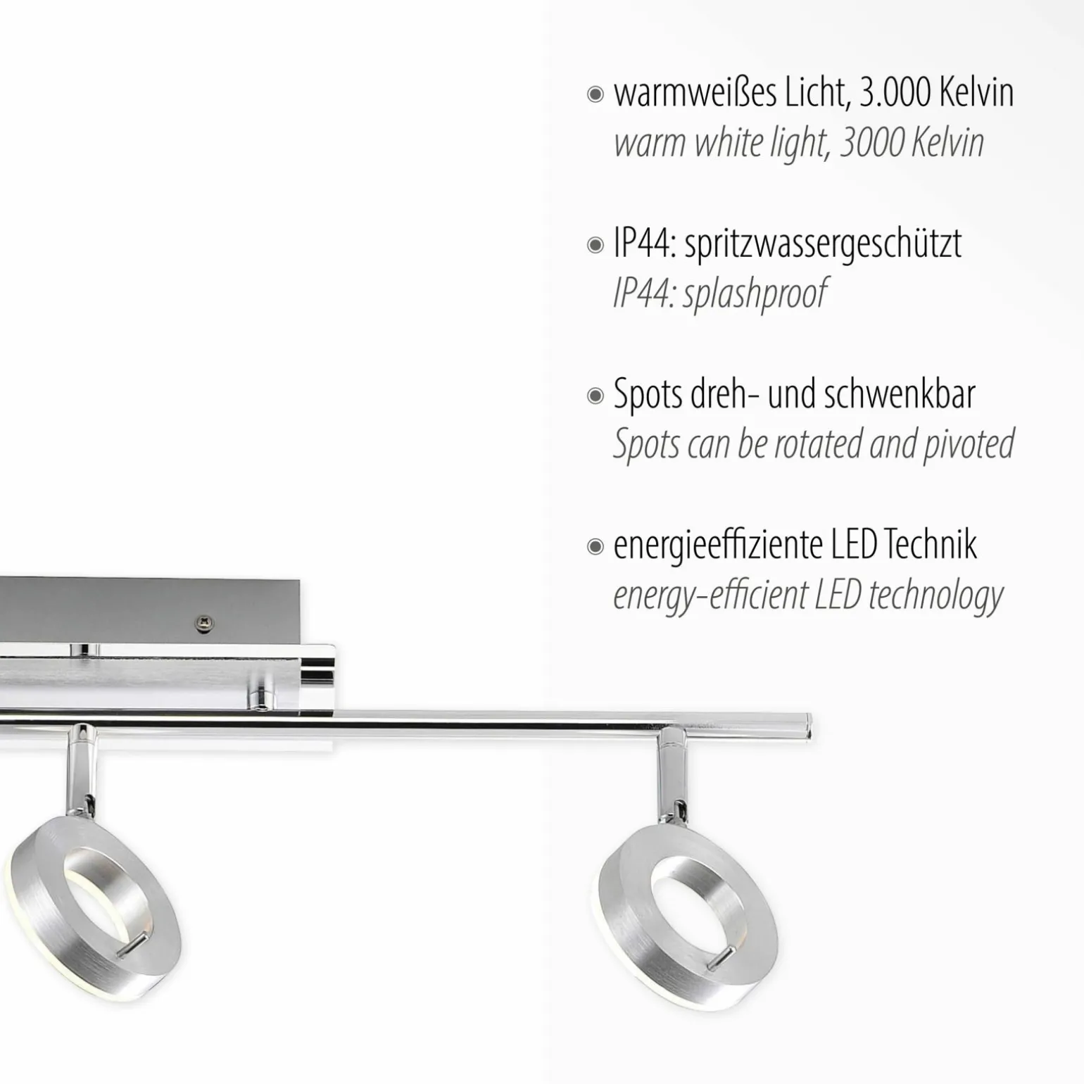 3x6W LED, 3x500lm, 3000K, IP44