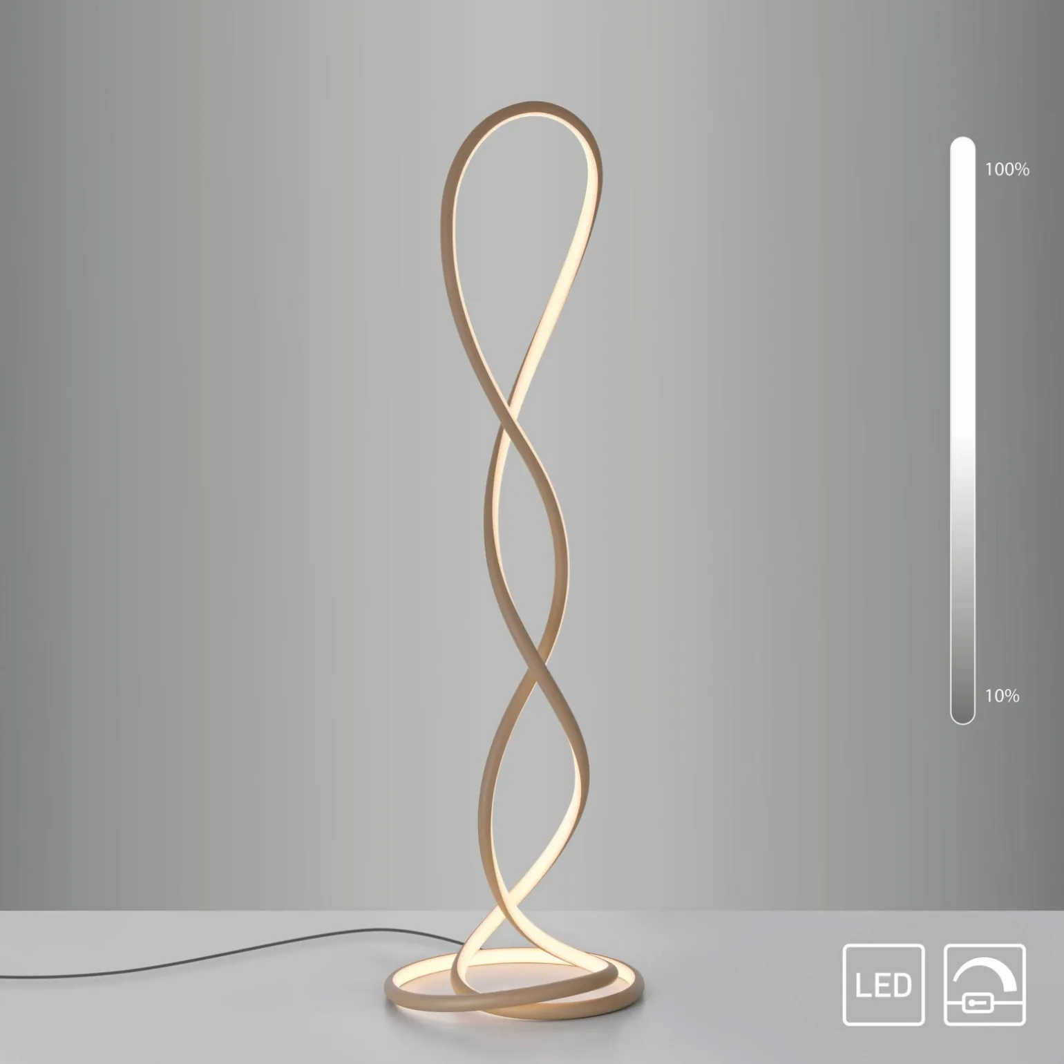 Erleben Sie stilvolle Beleuchtung mit der TWIST LED-Stehleuchte. Diese elegante Leuchte in warmem Braun vereint modernes Design mit funktionaler Beleuchtung. Mit einer Höhe von 143 cm und einer Breite von 41 cm fügt sich die Stehleuchte nahtlos in jeden Raum ein und setzt besondere Akzente. Die durchdachten Proportionen und die schlichte Eleganz machen sie zu einem zeitlosen Begleiter in Ihrem Zuhause. Die gleichmäßige Lichtverteilung sorgt für eine angenehme Atmosphäre, die zum Verweilen einlädt. Nutzen Sie die vielseitigen Einsatzmöglichkeiten, um Ihre Wohnbereiche individuell zu gestalten.