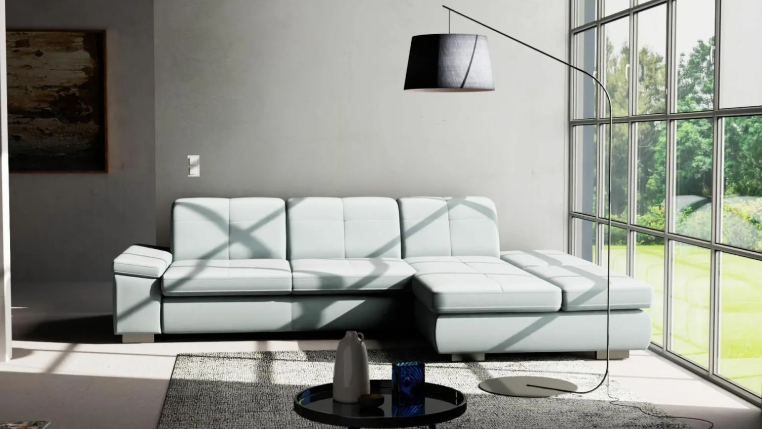 Die Mondstern Polstergarnitur in modernem Stil überzeugt durch ihre elegante, blaue Farbgebung und das hochwertige Stoffmaterial. Mit einer variablen Höhe von 85 bis 100 cm und einer Breite von 319 cm bietet sie großzügigen Komfort. Die Sitzhöhe von 47 cm und die Sitztiefe von 79 cm sorgen für ein angenehmes Sitzgefühl, ideal für entspannte Abende. Die Dimensionen von 218 cm Tiefe/Länge gewährleisten eine eindrucksvolle Präsenz in Ihrem Wohnzimmer. Diese exklusive Polstergarnitur vereint Stil und Funktionalität für ein luxuriöses Wohnambiente.