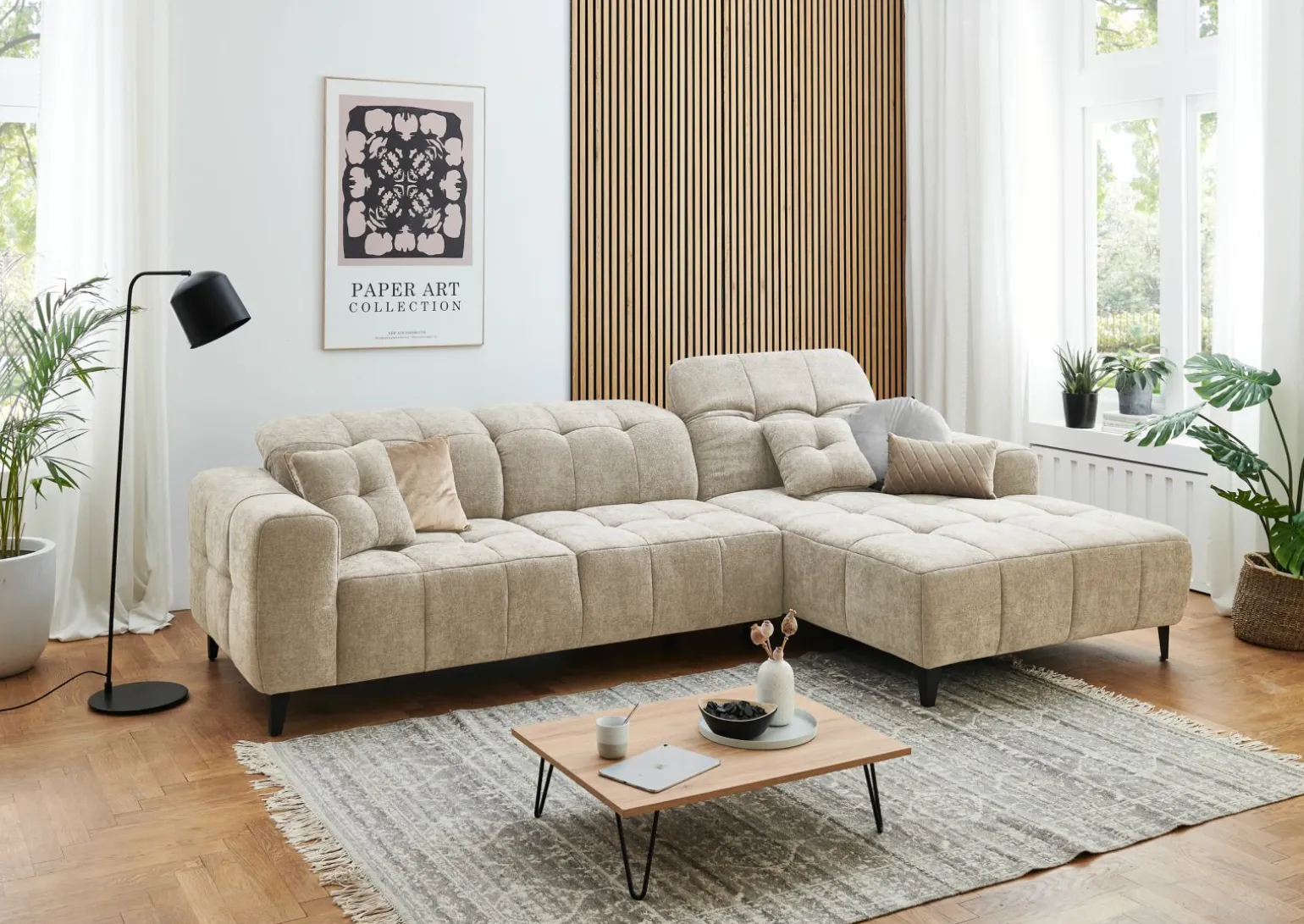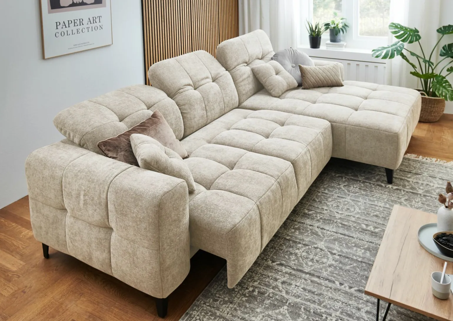 Entdecken Sie die elegante und komfortable Mayleen Polstergarnitur in einem dezenten Grauton, die perfekt in jedes Wohnzimmerambiente passt. Der hochwertige Stoff verleiht der Garnitur eine angenehme Haptik und sorgt für ein einladendes Sitzgefühl. Mit einer großzügigen Breite von 299 cm bietet sie genügend Platz für entspannte Stunden. Die Sitzhöhe von 45 cm und die Sitztiefe von 60 cm fördern eine ergonomische Sitzhaltung, die zum Verweilen einlädt. Dank des zeitlosen Designs fügt sich die Polstergarnitur harmonisch in jede Einrichtung ein und wird schnell zum Lieblingsplatz in Ihrem Zuhause.