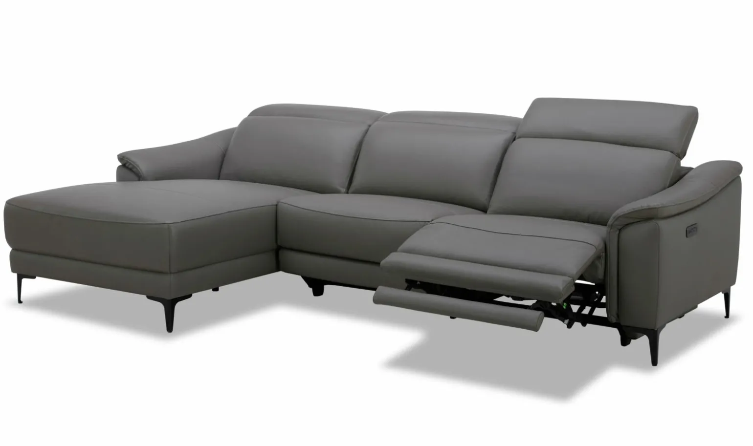 Die Kristo Polstergarnitur in modernem Stil überzeugt durch ihre klare Linienführung und die edle graue Lederoptik. Mit einer großzügigen Breite von 272 cm und einer Tiefe von 272×168 cm bietet sie reichlich Platz zum Entspannen. Das hochwertige Leder sorgt für ein luxuriöses Sitzgefühl und verleiht jedem Raum eine elegante Note. Diese Polstergarnitur ist die perfekte Ergänzung für ein stilvolles Zuhause und lädt dazu ein, gemütliche Stunden zu verbringen. Erleben Sie Komfort und Design in einer harmonischen Kombination, die Ihrem Wohnbereich das gewisse Etwas verleiht.