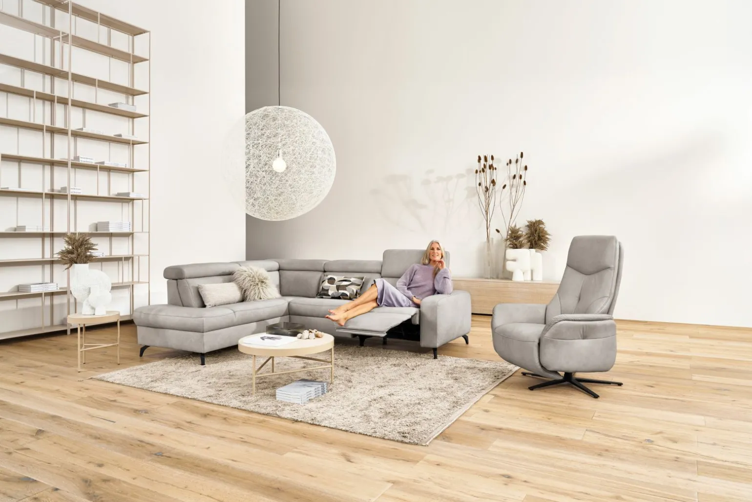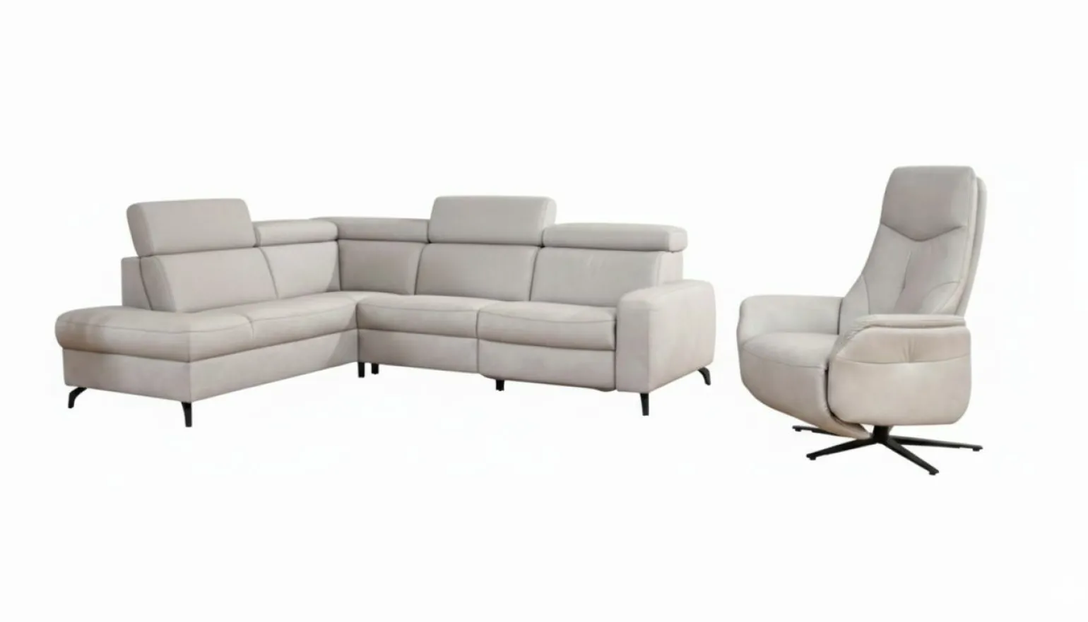 Hanne Polstergarnitur in Leder, grau beige