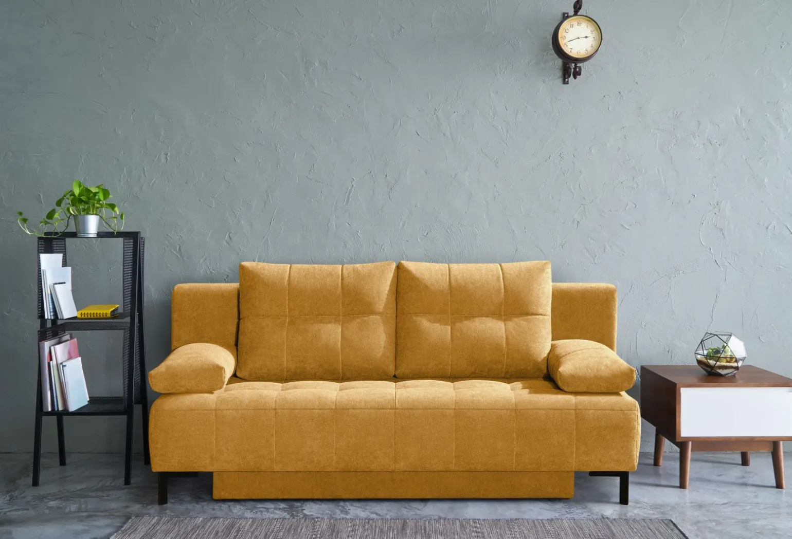 Entdecken Sie den Wayne Querschläfer in einem lebendigen Gelb, der durch seine Vielseitigkeit und Funktionalität besticht. Der Materialmix sorgt für eine angenehme Haptik und Langlebigkeit. Dank der manuellen Verstellungsart können Sie das Möbelstück ganz nach Ihren Bedürfnissen anpassen. Der integrierte Bettkasten bietet zusätzlichen Stauraum, ideal für eine platzsparende Aufbewahrung. Perfekt für Wohnräume, die Flexibilität und Stil erfordern, fügt sich dieses Modell nahtlos in unterschiedliche Einrichtungsstile ein und bietet Ihnen den Komfort und die Praktikabilität, die Sie suchen.