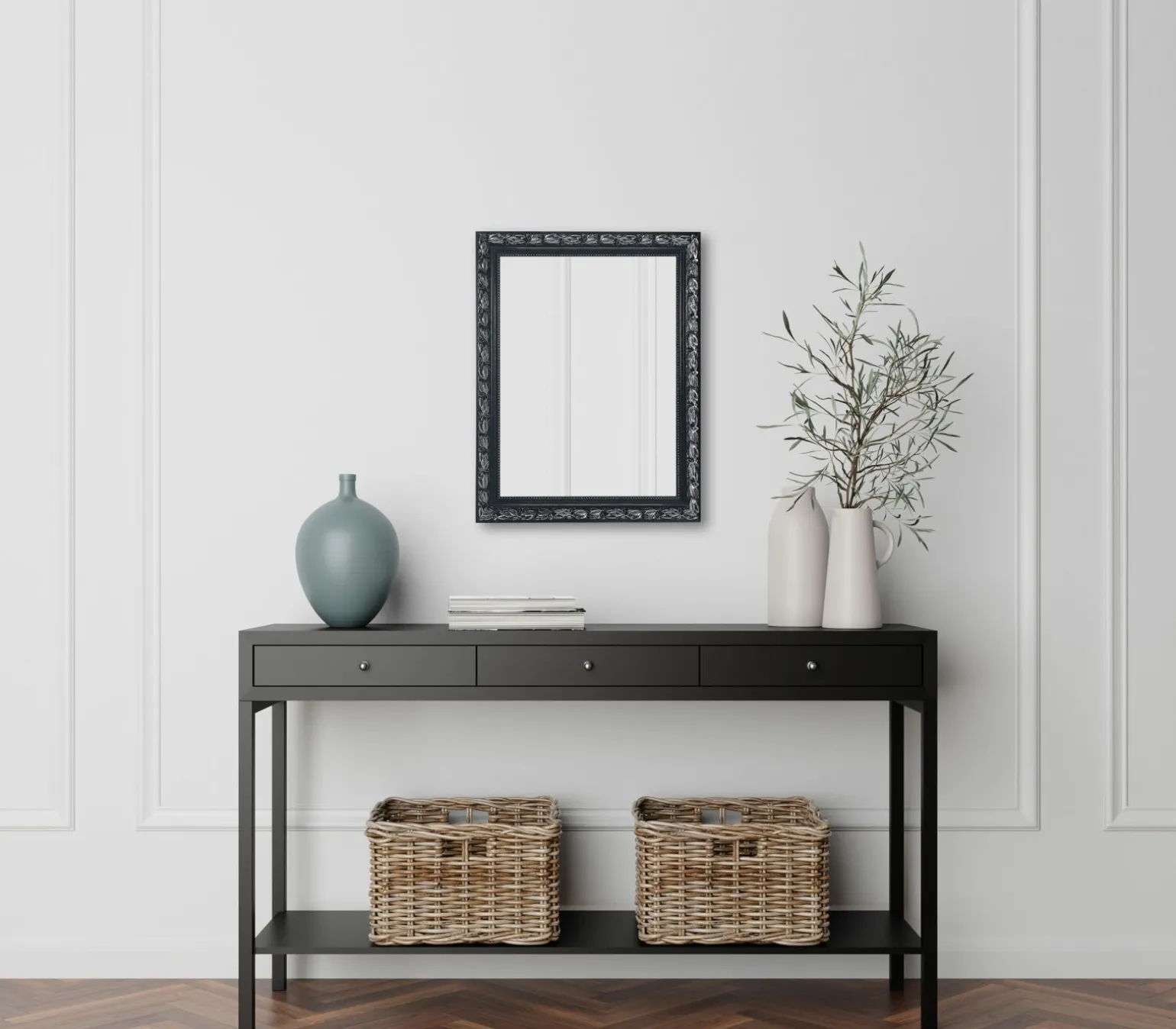 Rahmenspiegel schwarzsilberfarben