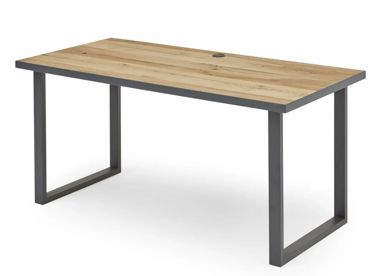 Dieser elegante Schreibtisch in braun ist die perfekte Ergänzung für Ihr Büro oder Arbeitszimmer. Mit einer Höhe von 80 cm, einer Breite von 160 cm und einer Tiefe von 75 cm bietet er ausreichend Platz für Ihre Arbeitsutensilien. Die Tischplatte besteht aus hochwertigem Holz furniert, was dem Schreibtisch nicht nur eine edle Optik verleiht, sondern auch für Langlebigkeit sorgt. Das graue Metallgestell sorgt für Stabilität und einen modernen Look. Der Schreibtisch ist nicht ausziehbar und auch nicht höhenverstellbar, was ihn ideal für einen festen Arbeitsplatz macht.