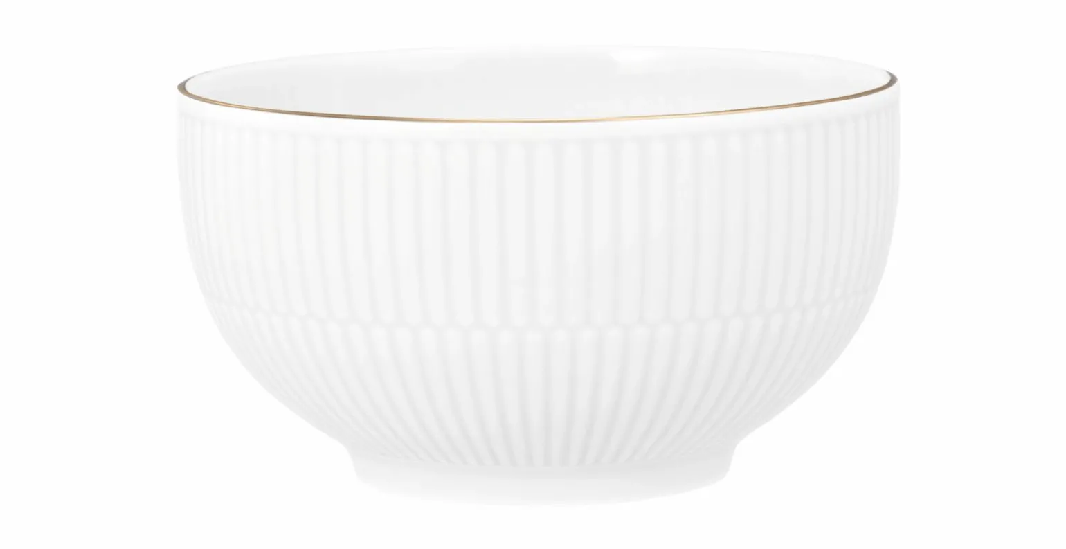 Erleben Sie den zeitlosen Stil der Amina Müslischale in Weiß. Mit einem Durchmesser von 15,1 cm und einer Höhe von 8,4 cm bietet diese Schale aus hochwertigem Porzellan eine perfekte Balance zwischen Eleganz und Funktionalität. Ihr schlichtes, aber dennoch edles Design wird durch goldfarbene Akzente veredelt, die jedem gedeckten Tisch Raffinesse verleihen. Die Müslischale eignet sich nicht nur ideal für Ihr Frühstück, sondern auch für Desserts oder Snacks und wird schnell zu einem Lieblingsstück in Ihrer Küche. Diese Schale verbindet Ästhetik und praktische Anwendung in perfekter Harmonie.