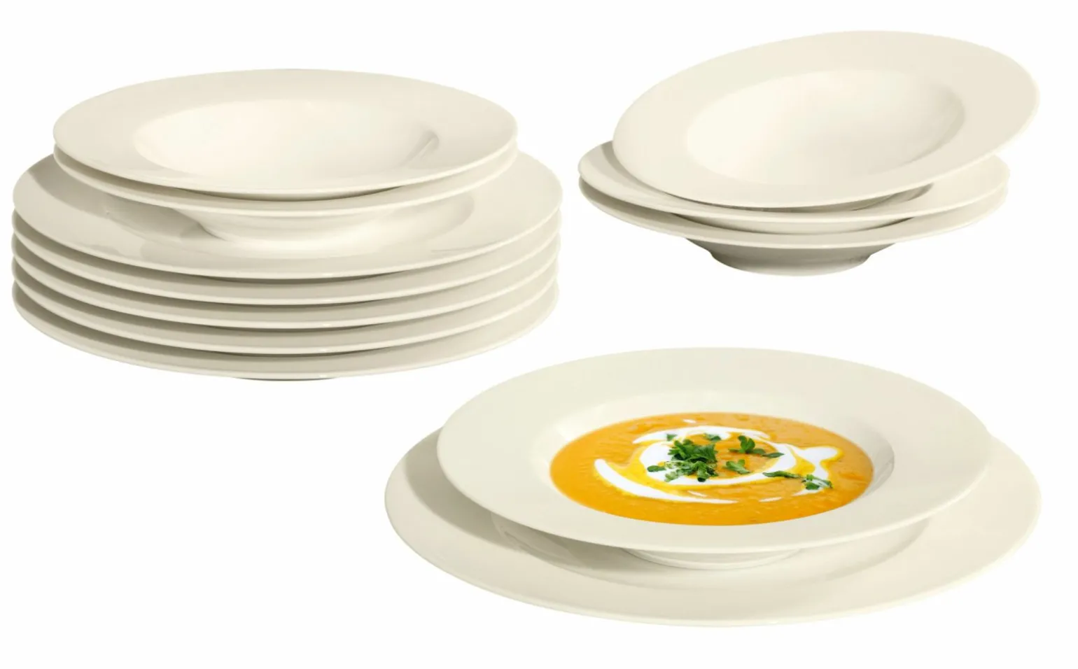 Verleihen Sie Ihrem Esstisch mit dem edlen Tafelgeschirr Zoe aus hochwertigem Porzellan in elegantem Beige einen Hauch von Raffinesse. Dieses 12-teilige Set bietet Platz für bis zu sechs Personen und eignet sich perfekt für Familienessen oder besondere Anlässe. Die sanfte Farbgebung harmoniert wunderbar mit unterschiedlichen Tischdekorationen und sorgt für ein stilvolles Ambiente. Das Porzellanmaterial verspricht Langlebigkeit und einfache Pflege, ideal für den täglichen Gebrauch und festliche Gelegenheiten gleichermaßen. Erleben Sie die perfekte Kombination aus Funktionalität und zeitloser Eleganz mit diesem auserlesenen Geschirrset.