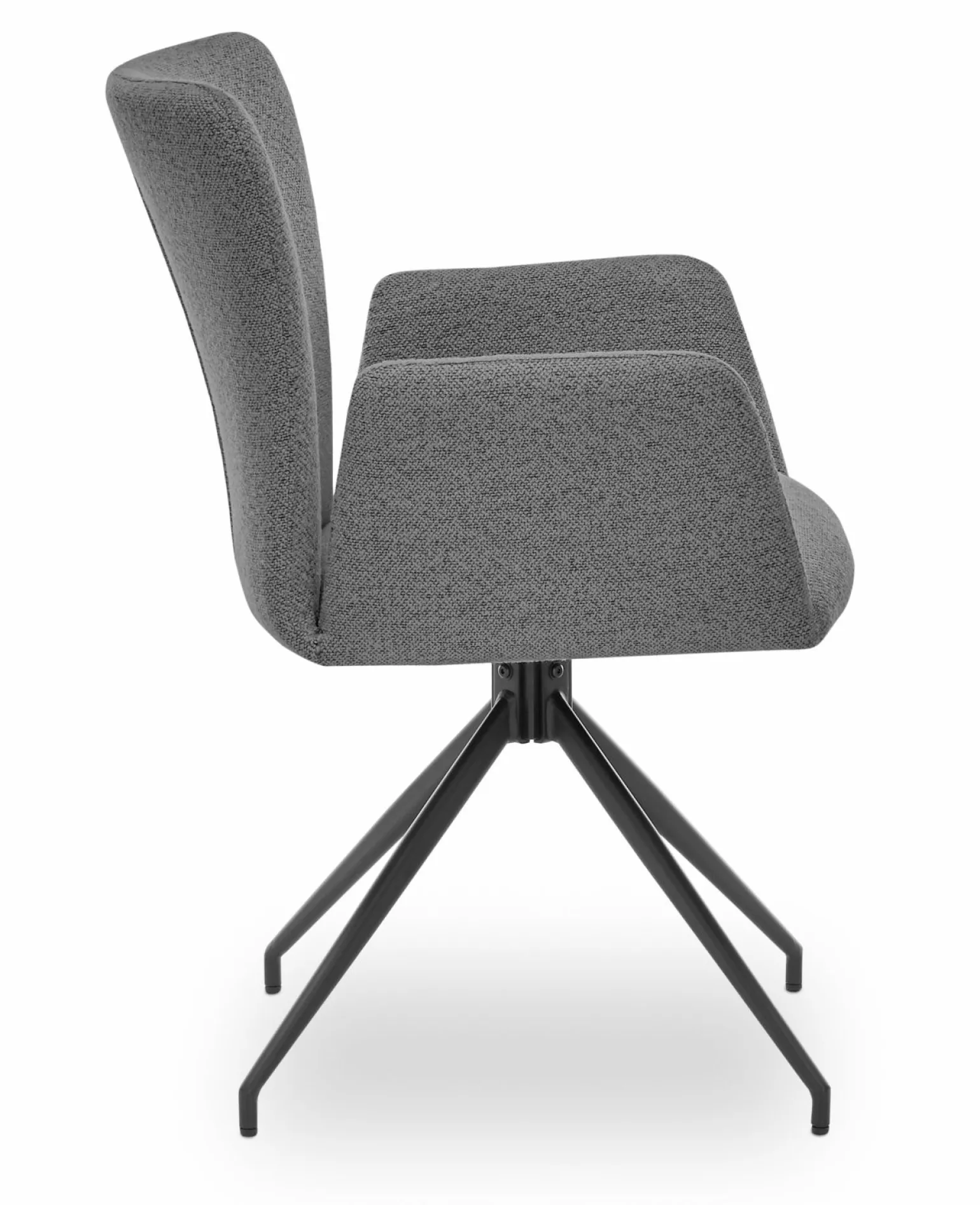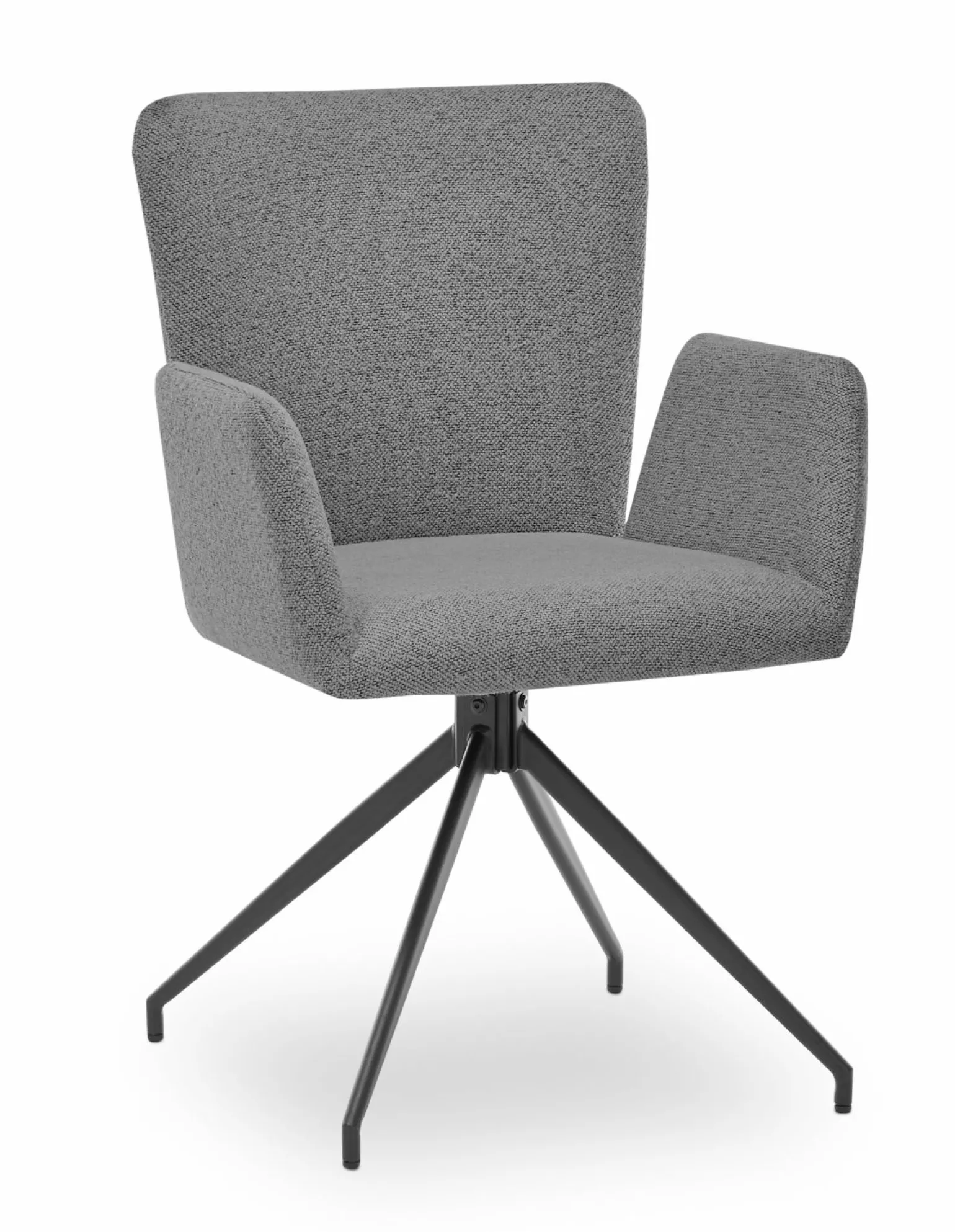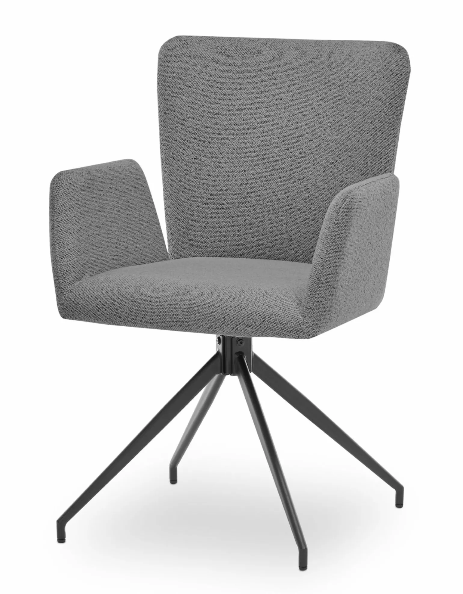 Der drehbare Armlehnstuhl El Paso in elegantem Grau kombiniert Komfort und Stil in einem modernen Design. Mit einer Höhe von 86 cm und einer Sitzhöhe von 45 cm bietet er eine bequeme Sitzposition. Die Polsterung aus hochwertigem Stoff sorgt für ein angenehmes Sitzgefühl, während die Armlehnen zusätzlichen Komfort bieten. Das stabile 4-Fuß-Gestell aus schwarzem Metall verleiht dem Stuhl nicht nur eine ansprechende Optik, sondern auch Stabilität. Ideal für das Esszimmer, fügt sich dieser Stuhl nahtlos in verschiedene Einrichtungsstile ein.