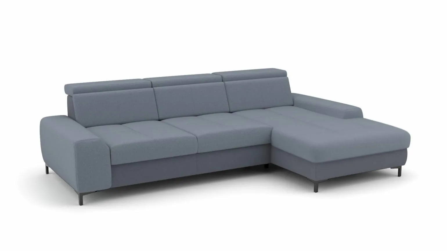 Erleben Sie modernen Komfort mit der Eckgarnitur SO 3400 in einem eleganten Blau. Dieses stilvolle Möbelstück verbindet ansprechendes Design mit funktionaler Vielseitigkeit, perfekt für Ihr stilvolles Zuhause. Der hochwertige Stoffbezug sorgt für ein angenehm weiches Sitzgefühl, während der Echtrücken für einen rundum harmonischen Look sorgt. Robust und stabil, das Metallgestell der Füße garantiert Langlebigkeit. Mit einer Sitzhöhe von 47 cm und einer Gesamthöhe von 84 cm bietet die Eckgarnitur optimalen Komfort. Die großzügige Breite von 307 cm und eine Tiefe von 195 cm machen sie zu einem Highlight in jedem Wohnzimmer.