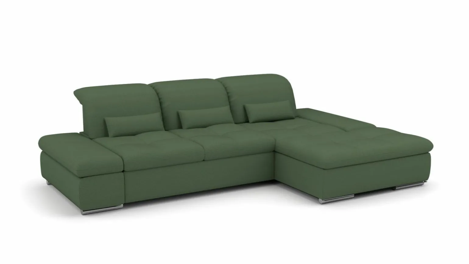 Die moderne Eckgarnitur SO 4100 7090_68 in einem ansprechenden Grünton bringt frischen Wind in Ihr Wohnzimmer. Mit einer großzügigen Breite von 284 cm und einer Tiefe von 190 cm bietet diese stilvolle Sitzgelegenheit ausreichend Platz für bis zu drei Personen. Der hochwertige Stoff sorgt für ein angenehmes Sitzgefühl, während der Echtrücken für zusätzliche Unterstützung sorgt. Die Sitzhöhe beträgt 43 cm, ideal für entspannte Stunden. Abgerundet wird das Design durch ein robustes Metallgestell, das der Garnitur Stabilität und Langlebigkeit verleiht. Verleihen Sie Ihrem Raum mit dieser Eckgarnitur einen modernen Touch.