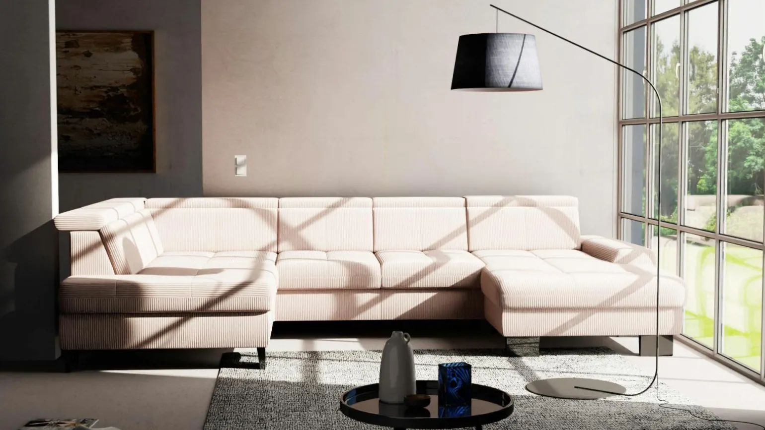 Erleben Sie höchsten Komfort mit der modernen Wohnlandschaft SO 3400. In einem auffälligen Rot gehalten, bringt dieses stilvolle Möbelstück einen Hauch von Eleganz in jeden Raum. Die großzügigen Maße von 373 cm Breite und 220 cm Tiefe bieten reichlich Platz zum Entspannen. Die Sitzhöhe von 49 cm sorgt für angenehmes Sitzen, während der Bezug aus hochwertigem Stoff für ein angenehmes Hautgefühl sorgt. Der Echtrücken und das stabile Metallgestell der Füße verleihen der Wohnlandschaft nicht nur Stabilität, sondern auch eine moderne Ästhetik, die in jedes zeitgemäße Interieur passt.