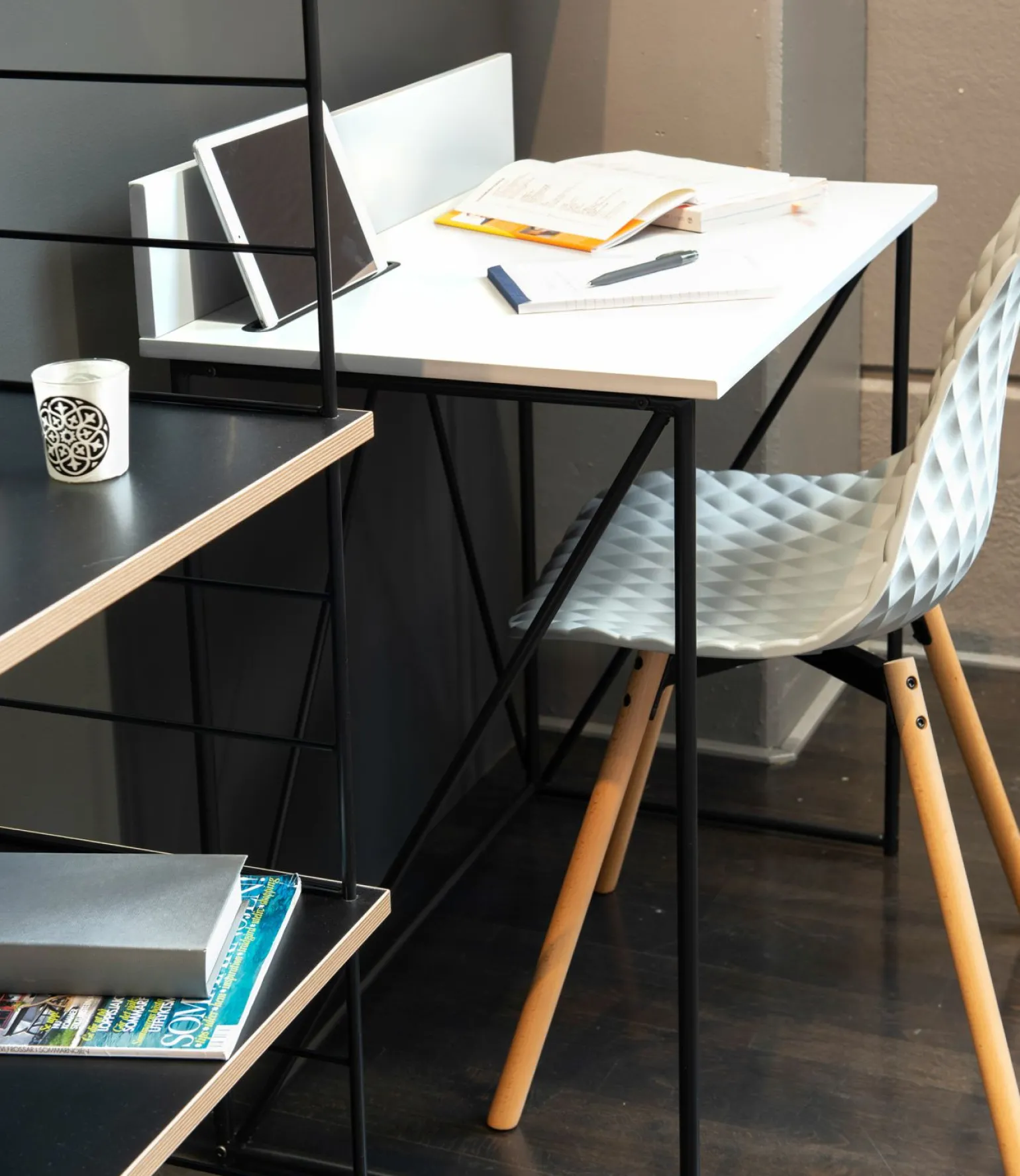 Tischplatte aus MDF, inkl. Tablethalter.