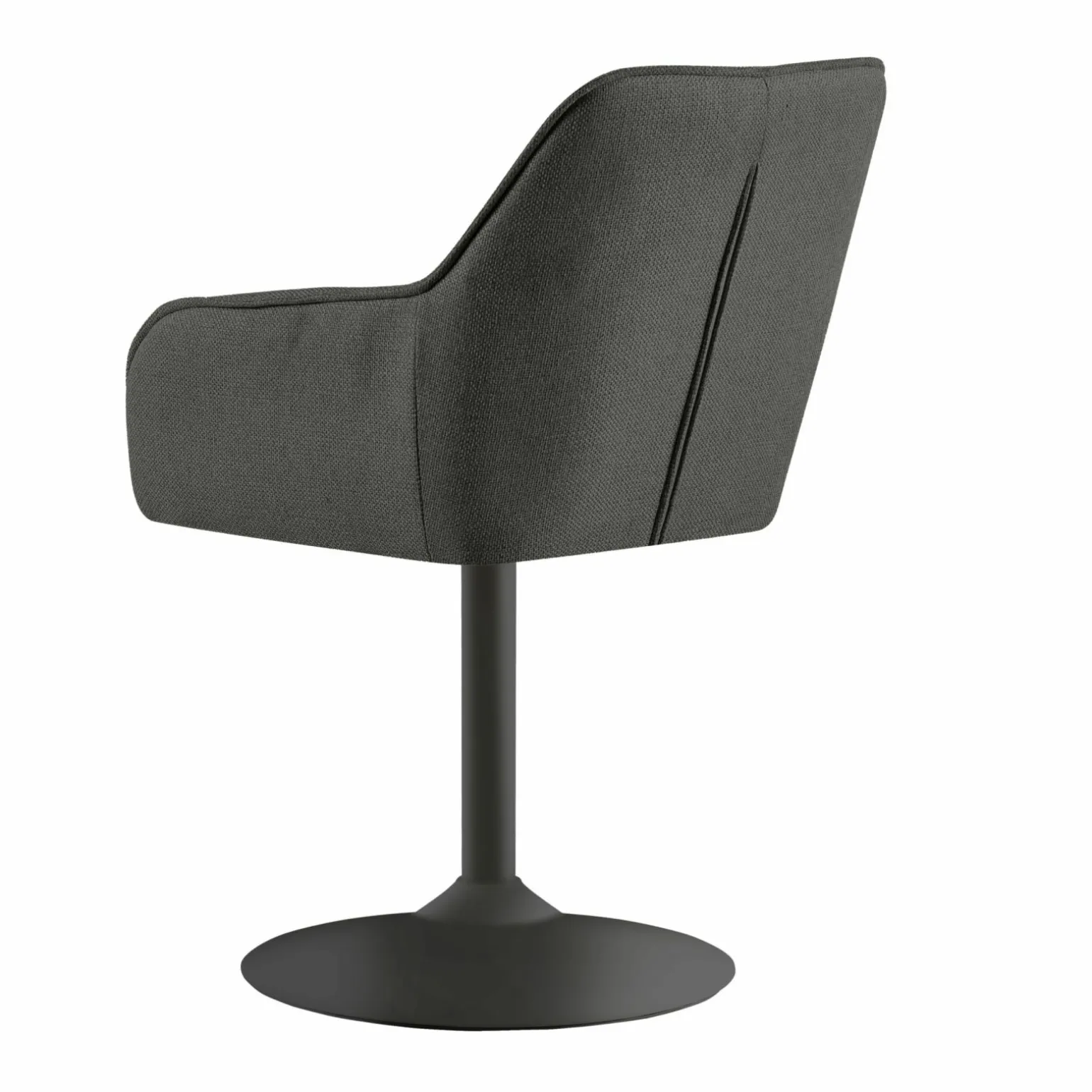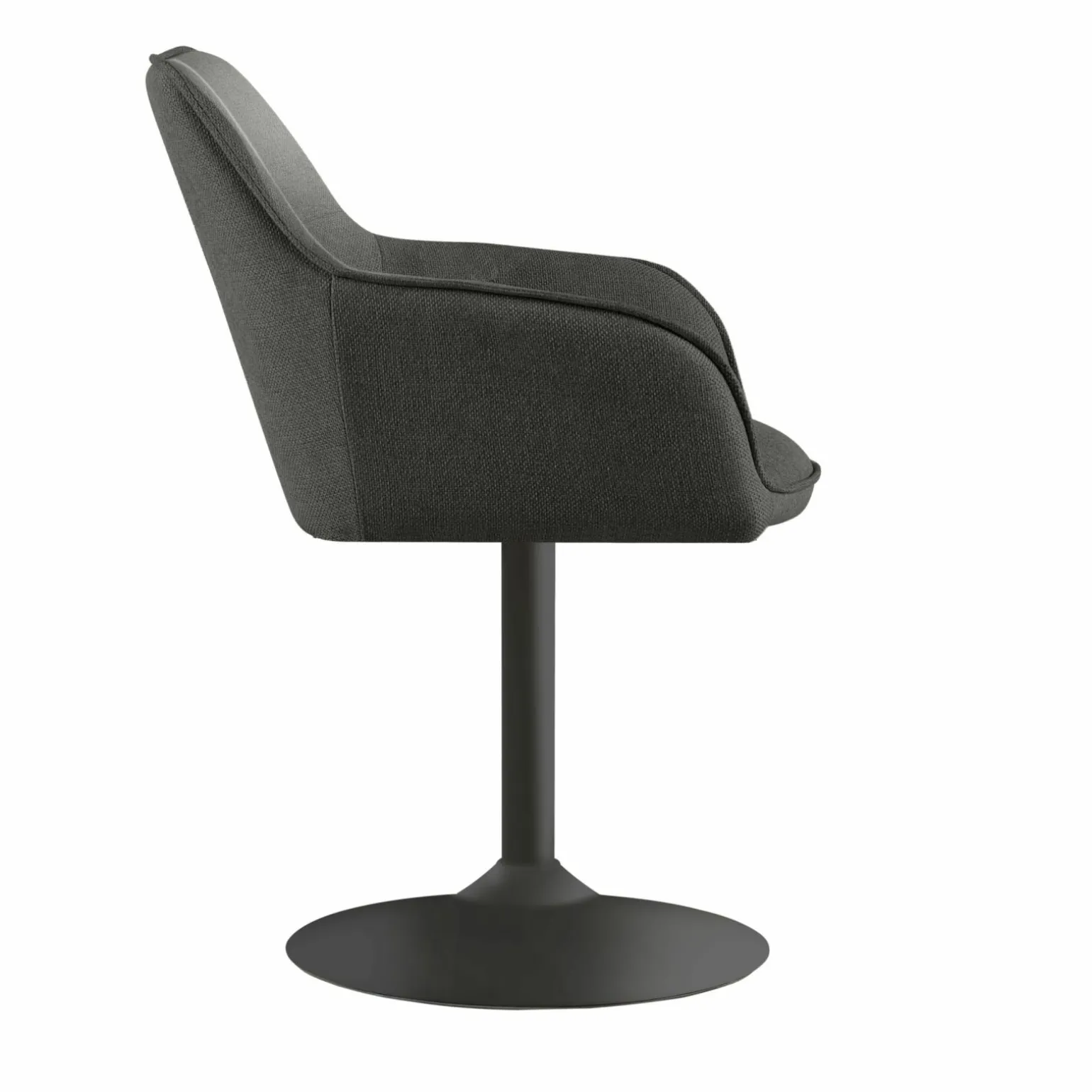 Erleben Sie modernsten Komfort und stilvolle Eleganz mit dem drehbaren Kitt Trompetenfußstuhl. Der Stuhl besticht durch seinen modernen Stil und seine tiefschwarze Farbe, die jedem Raum eine zeitgemäße Note verleiht. Mit einer Sitzhöhe von 51 cm und einer Sitztiefe von 44 cm bietet er optimalen Sitzkomfort. Das schwarze Gestell in der Tellerfuß-Variante sorgt für Stabilität und Eleganz. Der Stoffbezug ergänzt das Design und macht den Stuhl zu einem robusten und ästhetischen Möbelstück, das bis zu 120 kg belastbar ist. Drehen Sie sich mühelos mit dem um 360 Grad drehbaren Sitz.