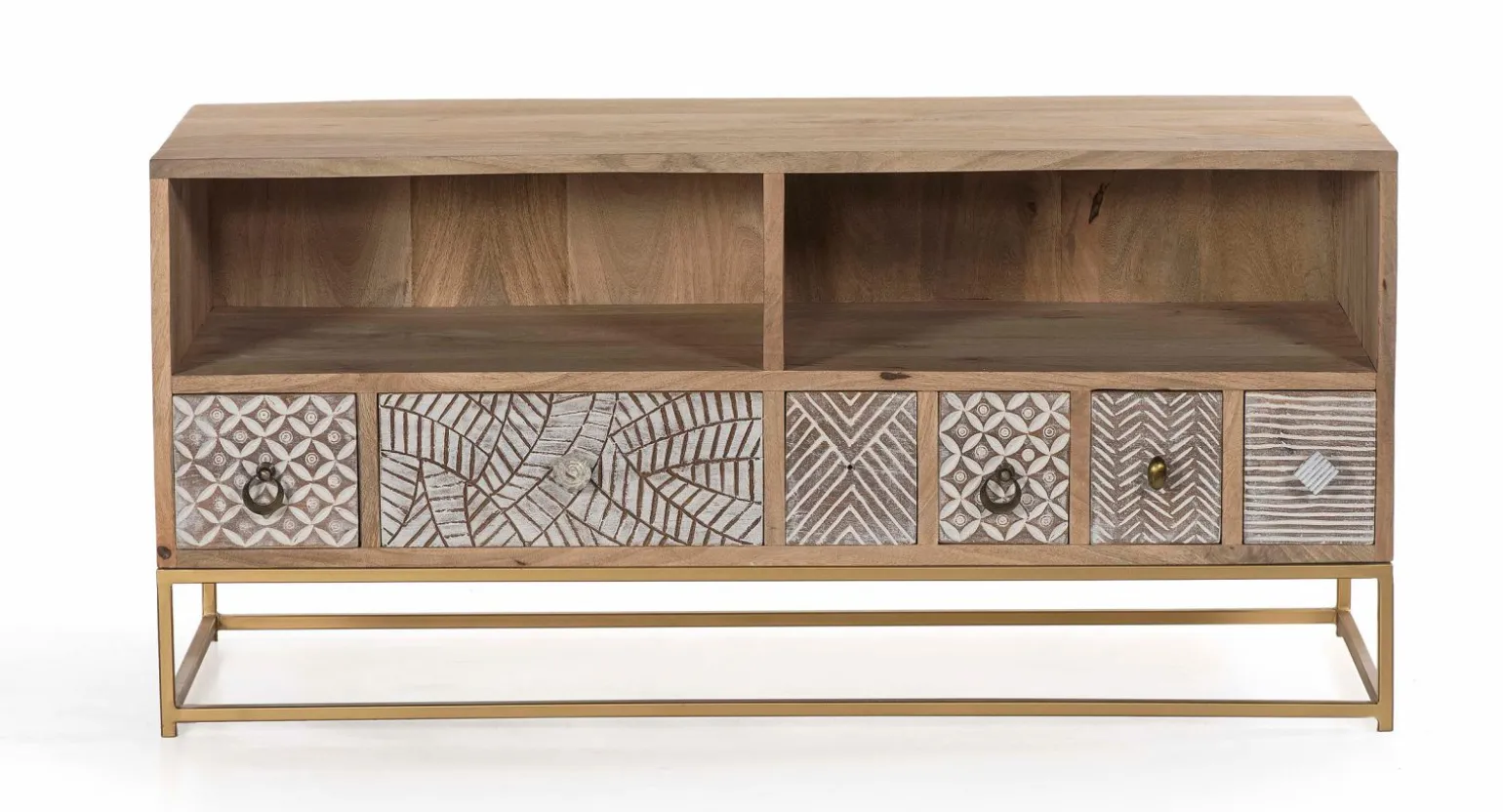 Verleihen Sie Ihrem Wohnzimmer mit dem eleganten TV-Schrank aus massivem Holz einen Hauch von natürlichem Charme. Mit einer Breite von 120 cm, einer Höhe von 55 cm und einer Tiefe von 46 cm bietet er ausreichend Platz für Ihren Fernseher und zusätzliche Geräte. Die warme, braune Farbe des Holzes harmoniert perfekt mit jeder Einrichtung und schafft eine einladende Atmosphäre. Dank der robusten Konstruktion ist dieser Schrank nicht nur ein optisches Highlight, sondern auch besonders langlebig. Sein zeitloses Design macht ihn zu einem idealen Begleiter in Ihrem Zuhause.