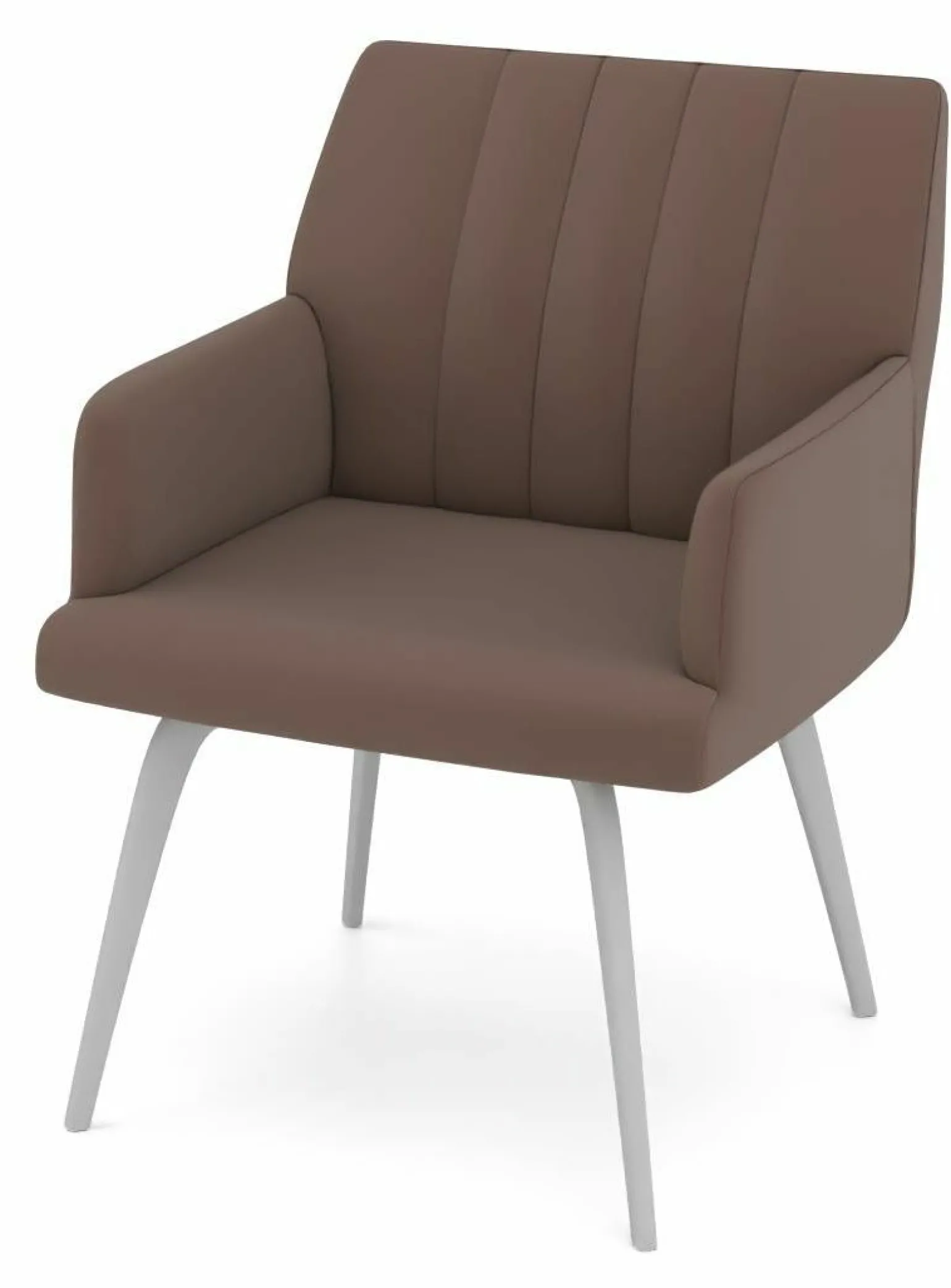 Erleben Sie zeitgemäßen Komfort mit dem Modell 9020 Armlehnenstuhl. Dieses moderne Möbelstück in elegantem Braun vereint Stil und Funktionalität. Der hochwertige Lederbezug bietet eine luxuriöse Sitzfläche, die durch die ergonomischen Armlehnen ergänzt wird. Das silberfarbene Gestell aus Edelstahl verleiht dem Stuhl eine robuste Stabilität und sorgt für eine ansprechende Optik. Mit einer Höhe von 84 cm und einer Breite von 60 cm passt dieser Stuhl perfekt in verschiedene Raumkonzepte. Die 4-Fuß-Gestellvariante garantiert einen sicheren Stand und rundet das Design harmonisch ab.