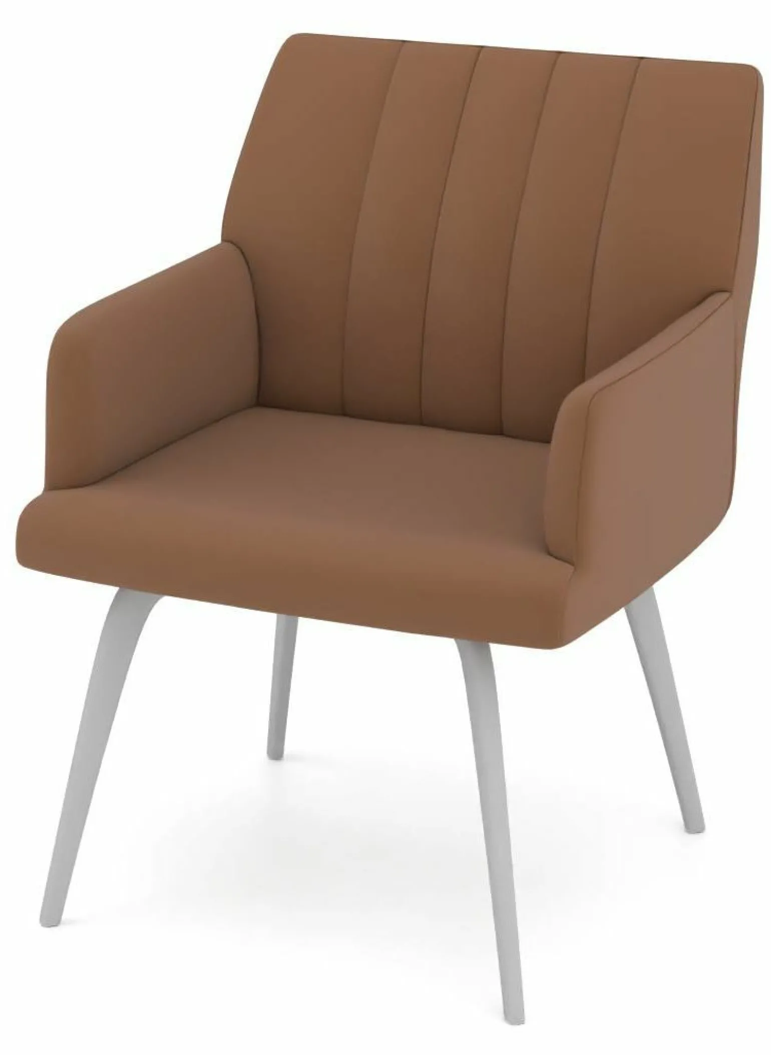 Erleben Sie ultimativen Komfort und zeitloses Design mit dem Armlehnenstuhl Modell 9020. Dieser moderne Stuhl beeindruckt durch seine elegante Kombination aus braunem Leder und einem silberfarbenen Edelstahlgestell. Die Armlehnen bieten zusätzlichen Komfort, während das robuste 4-Fuß-Gestell für Stabilität sorgt. Mit einer Höhe von 84 cm, einer Breite von 60 cm und einer Tiefe von 61 cm passt er perfekt in verschiedene Räume und Einrichtungsstile. Ideal für stilvolle Wohnzimmer oder als Akzent in Ihrem Büro, vereint dieser Stuhl Funktionalität und Ästhetik auf höchstem Niveau.
