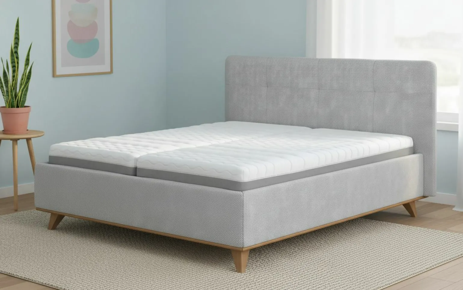 - Elegantes graues Designbett