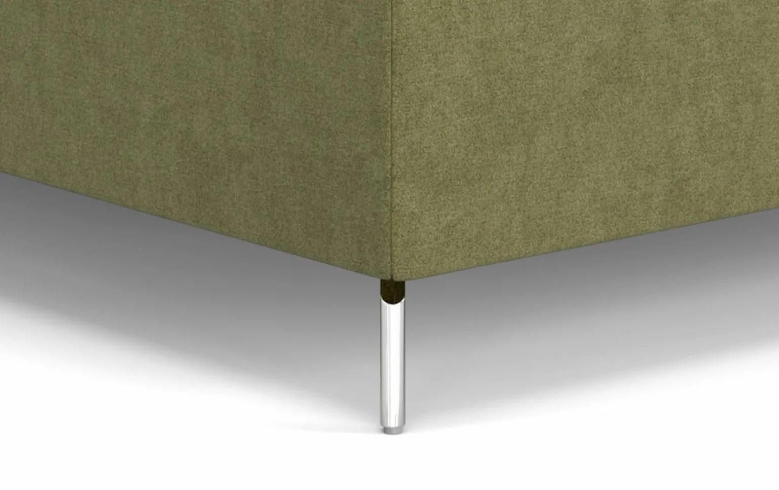 Das vito Nivora Designbett in einem eleganten Grünton ist die perfekte Ergänzung für Ihr Schlafzimmer. Mit einer komfortablen Liegefläche von 140×200 cm bietet es ausreichend Platz für erholsame Nächte. Der hochwertige Stoffbezug sorgt für ein angenehmes Schlafgefühl, während das stabile Metallgestell mit silberfarbenen Füßen für einen modernen Look sorgt. Das Bett ist 117 cm hoch und verzichtet bewusst auf einen Bettkasten, um eine schlanke und stilvolle Ästhetik zu bewahren. Gönnen Sie sich dieses exquisite Designstück für Ihr Zuhause.