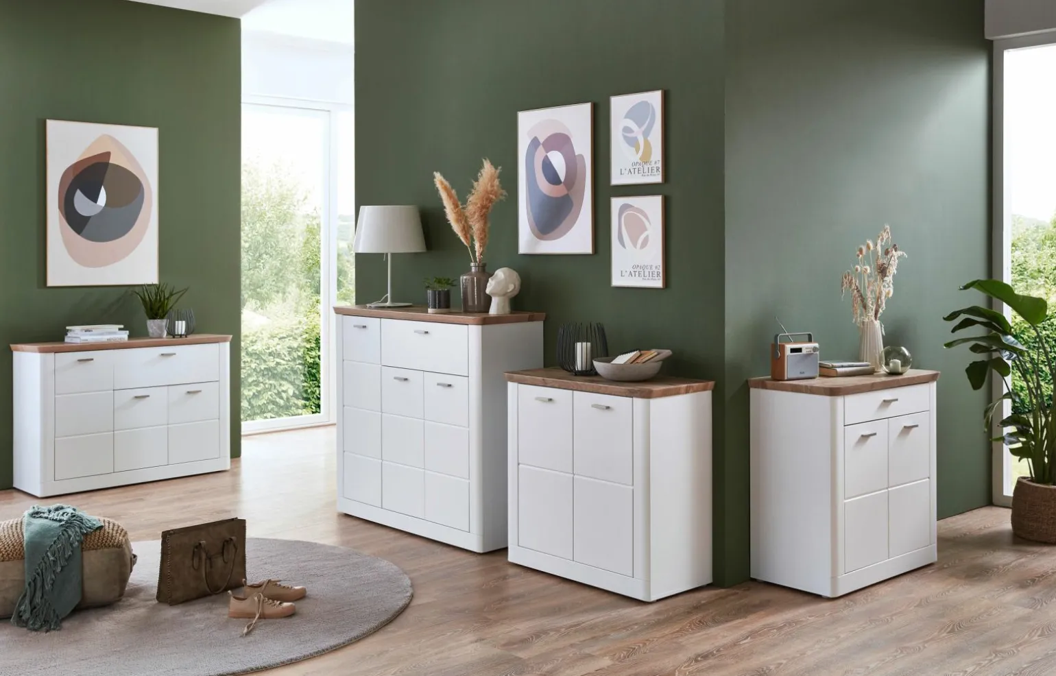Die Vito Recess Kommode ist ein modernes Möbelstück, das mit einem stilvollen Design in den Farben Braun, Weiß, Silber und Schwarz überzeugt. Gefertigt aus hochwertigem Holzfaserwerkstoff, bietet sie eine langlebige und pflegeleichte Oberfläche. Mit einer Höhe von 88 cm, einer Breite von 125 cm und einer Tiefe von 40 cm fügt sich diese Kommode perfekt in verschiedene Wohnräume ein, ohne dabei viel Platz einzunehmen. Die klaren Linien und die elegante Farbgebung machen sie zu einem echten Blickfang, der Funktionalität und Stil harmonisch vereint.