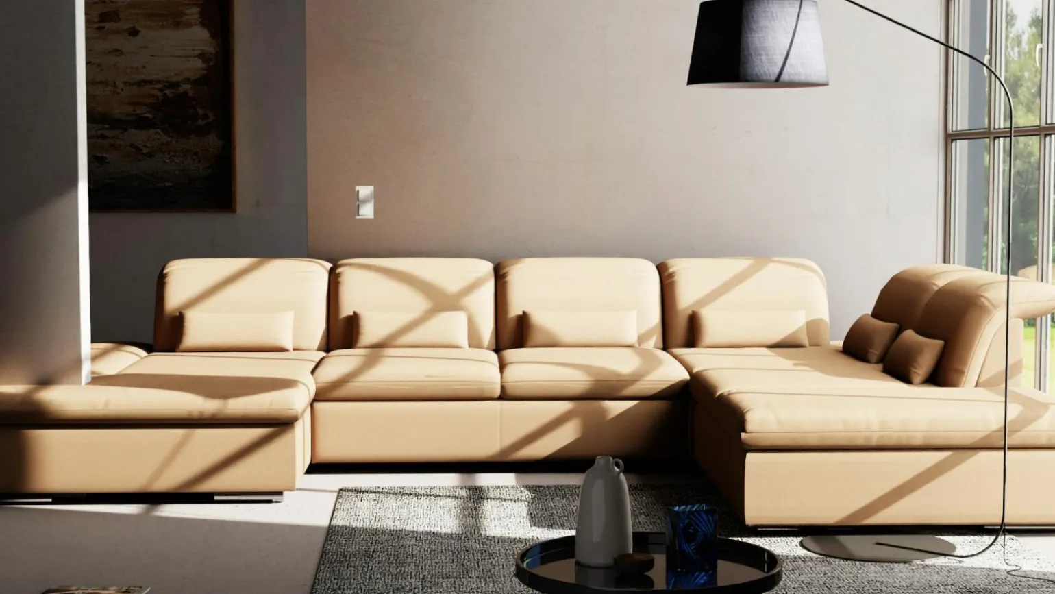Erleben Sie Komfort und Stil mit der Vito Fulla Polstergarnitur in einem ansprechenden Blau. Gefertigt aus hochwertigem Stoff, bietet dieses Möbelstück sowohl Langlebigkeit als auch eine elegante Optik. Die großzügige Breite von 408 cm und die Tiefe von 272 cm sorgen für reichlich Platz zum Entspannen. Mit einer Sitzhöhe von 43 cm wird jede Sitzgelegenheit zum gemütlichen Erlebnis. Diese Polstergarnitur ist die perfekte Ergänzung für ein modernes Wohnambiente und fügt sich nahtlos in Ihr Zuhause ein. Verleihen Sie Ihrem Wohnzimmer einen Hauch von Eleganz und Komfort.