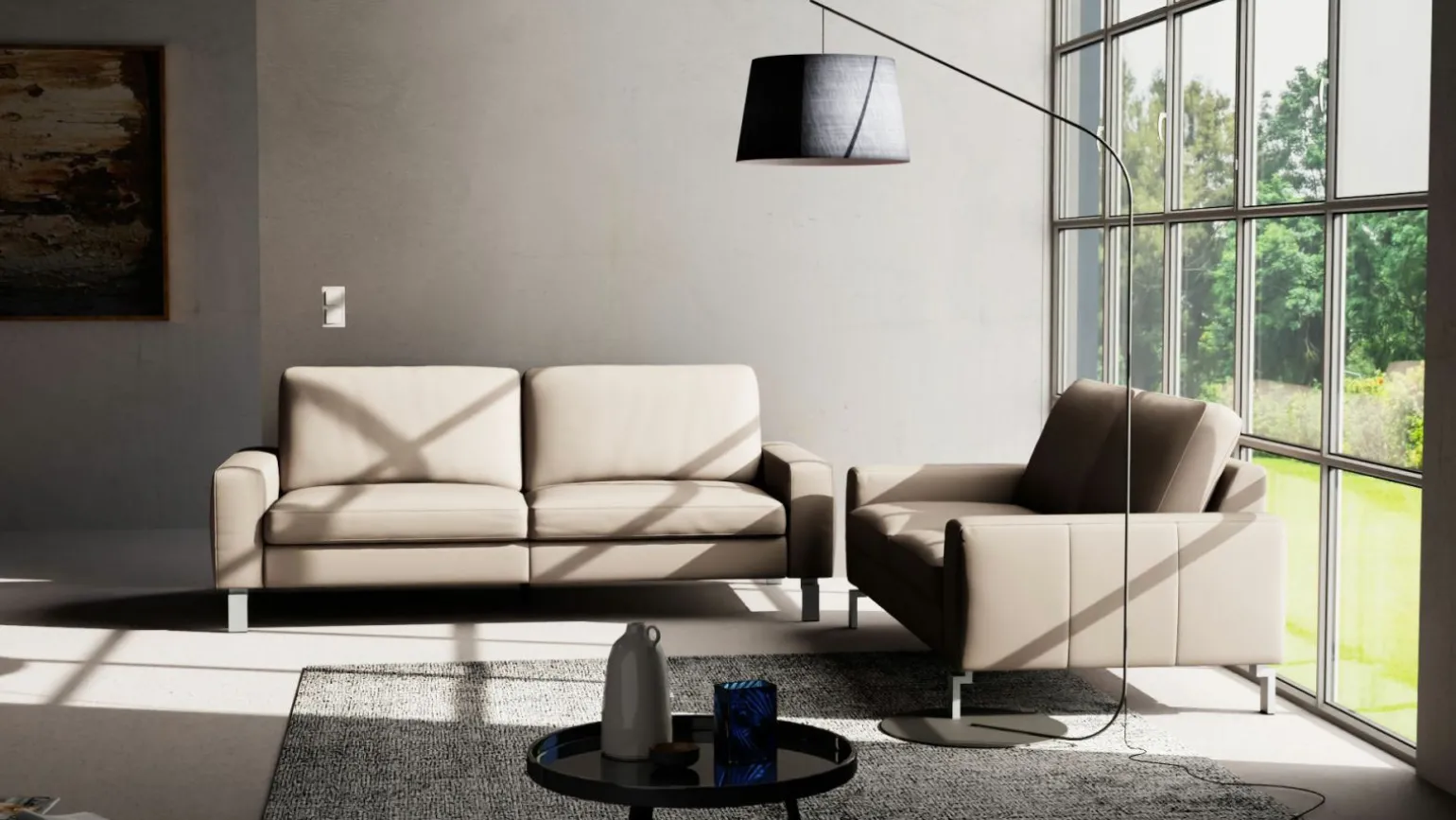 Vito Step Polstergarnitur Grau Leder