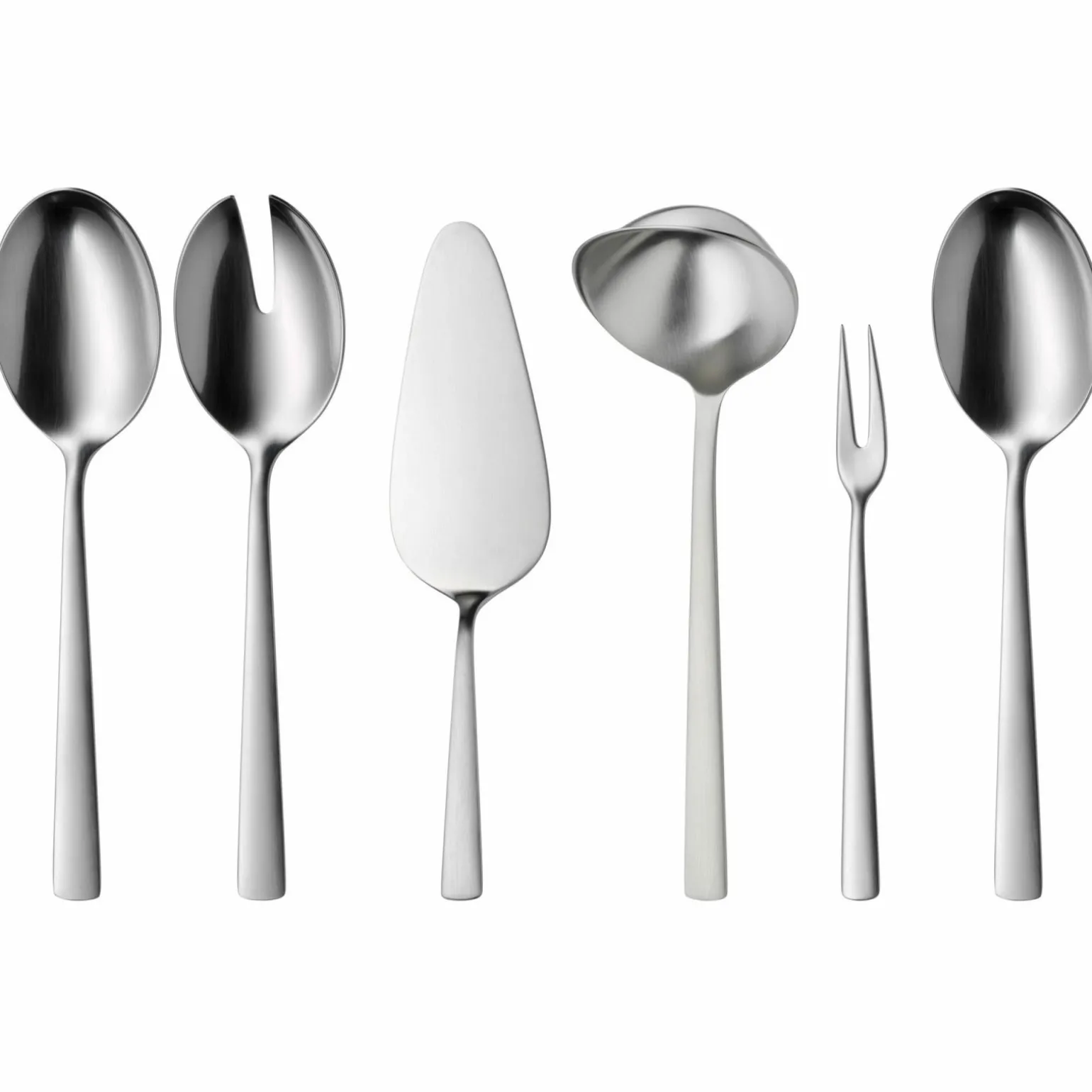 - Besteht aus Menülöffeln, Menümessern, Menügabeln, Kuchengabeln, Kaffeelöffeln, Tortenheber, Serviergabel, Servierlöffel und Salatbesteck