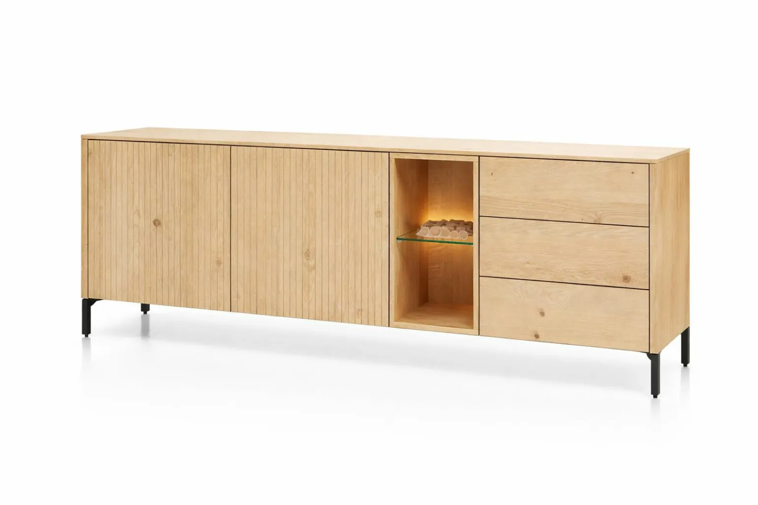 2 Türen, 3 Schubladen und 2 Nischen mit