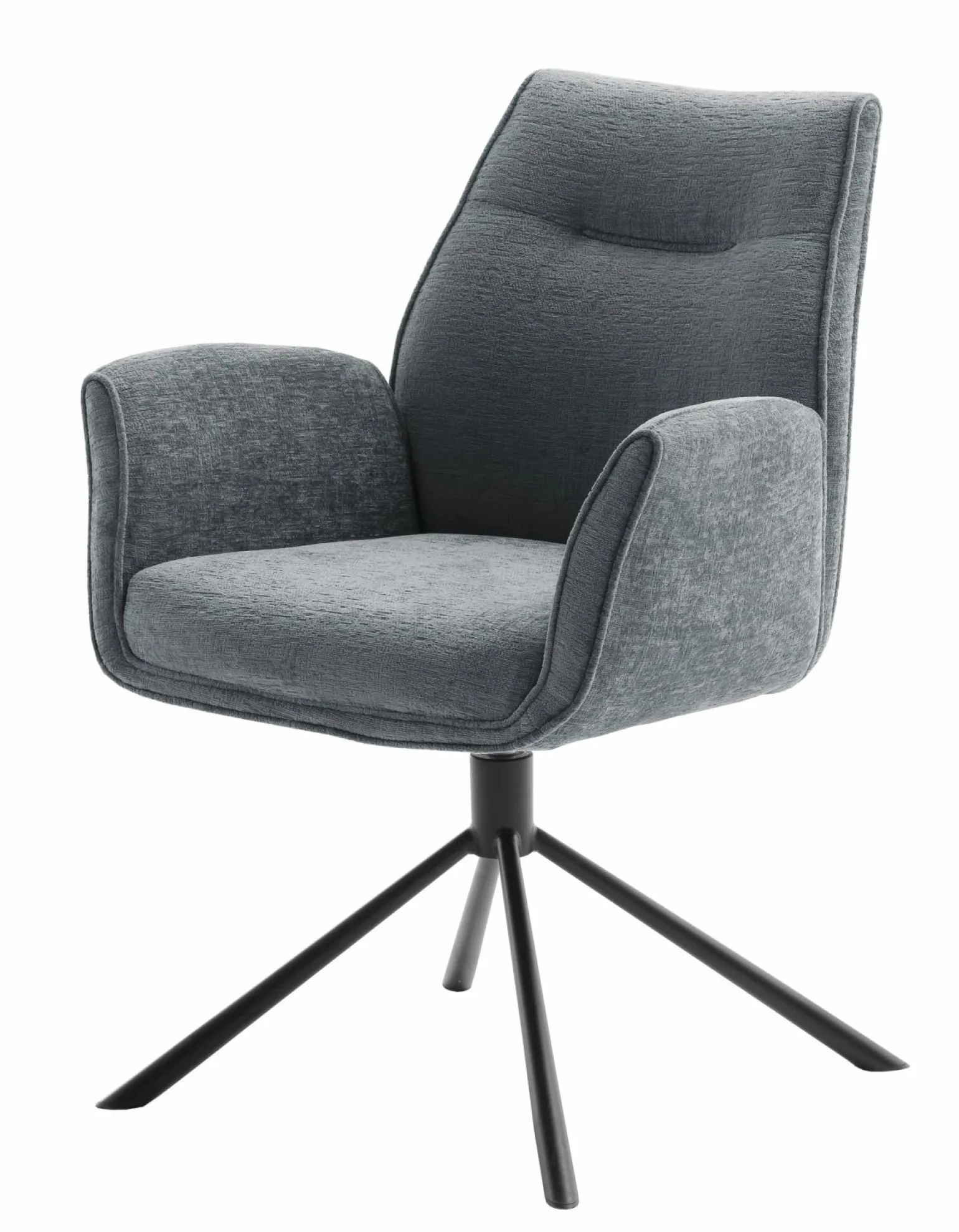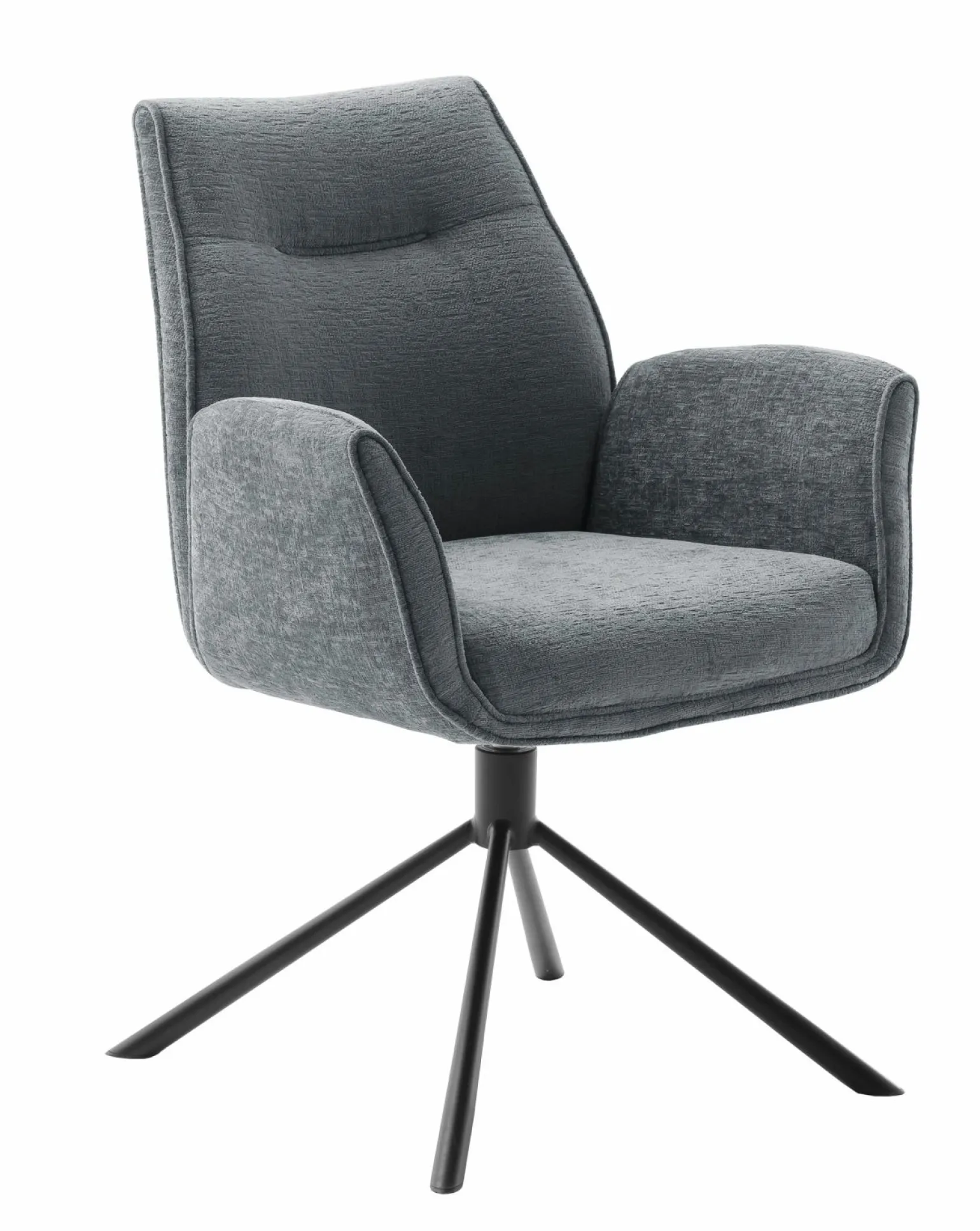 Der elegante Diveria grau Textil 4-Fuß-Stuhl mit Armlehne vereint Komfort und Stil. Mit einer Höhe von 90 cm, einer Breite von 64 cm und einer Sitzhöhe von 50 cm bietet er optimalen Sitzkomfort. Der drehbare Sitz aus hochwertiger Chenille sorgt für zusätzliche Flexibilität, während die Polsterung und das Textilmaterial für ein angenehmes Sitzerlebnis sorgen. Das stabile Gestell aus schwarzem Metall garantiert Langlebigkeit und eine ansprechende Optik. Ideal für stilvolle Essbereiche und moderne Wohnkonzepte.