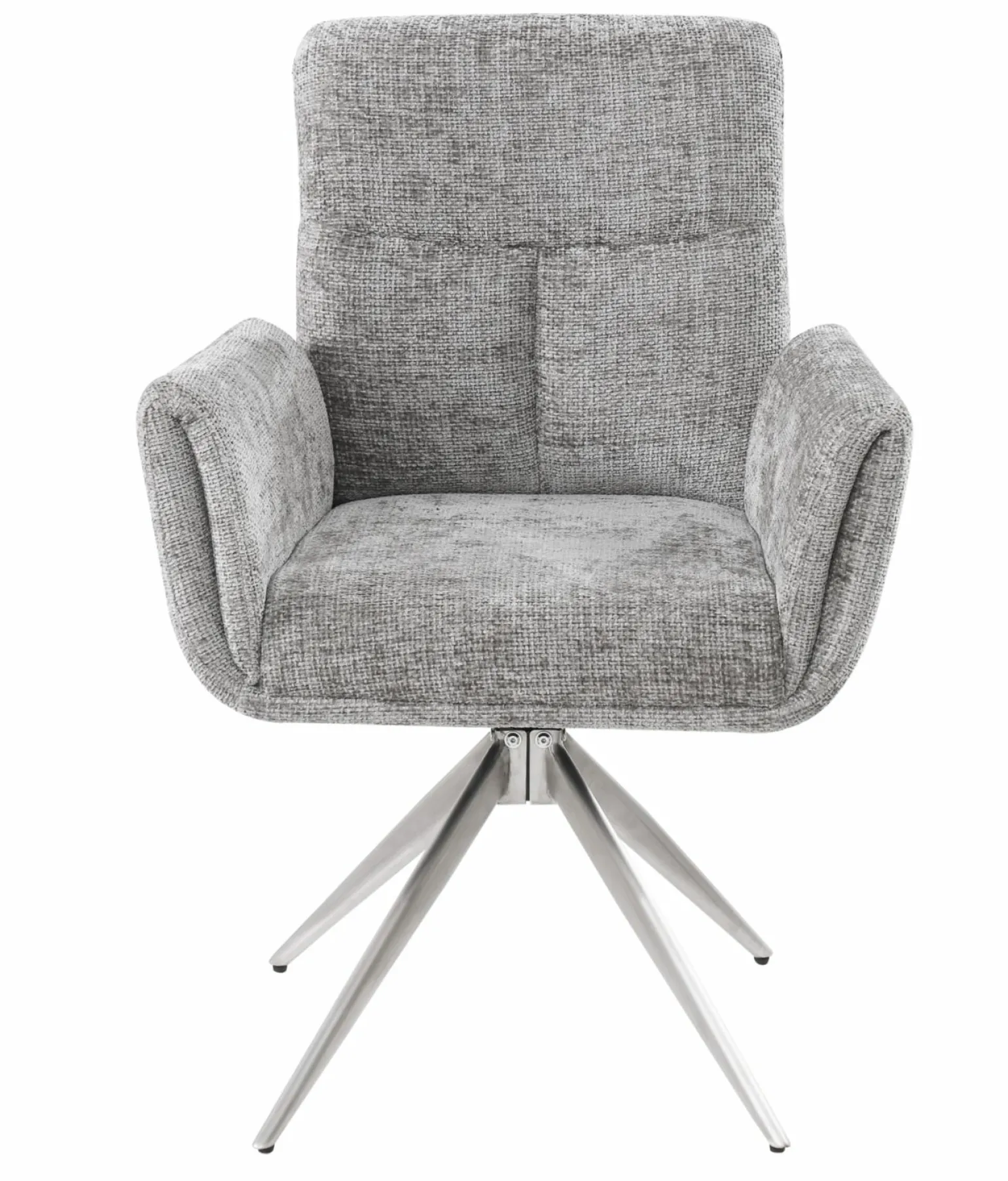 Der Sofia Armlehnstuhl in elegantem Grau vereint Komfort und modernes Design. Mit einer komfortablen Sitzhöhe von 50 cm und einer Gesamthöhe von 93,5 cm bietet dieser Stuhl optimalen Sitzkomfort. Die hochwertige Chenille-Polsterung sorgt für ein angenehmes Sitzerlebnis, während das silberfarbene Stativgestell aus Edelstahl Stabilität und Stil verleiht. Der Stuhl ist mit bequemen Armlehnen ausgestattet und hält Belastungen bis zu 120 kg stand. Die klare Linienführung und das edle Material machen ihn zum idealen Begleiter für stilvolle Wohn- und Essbereiche.