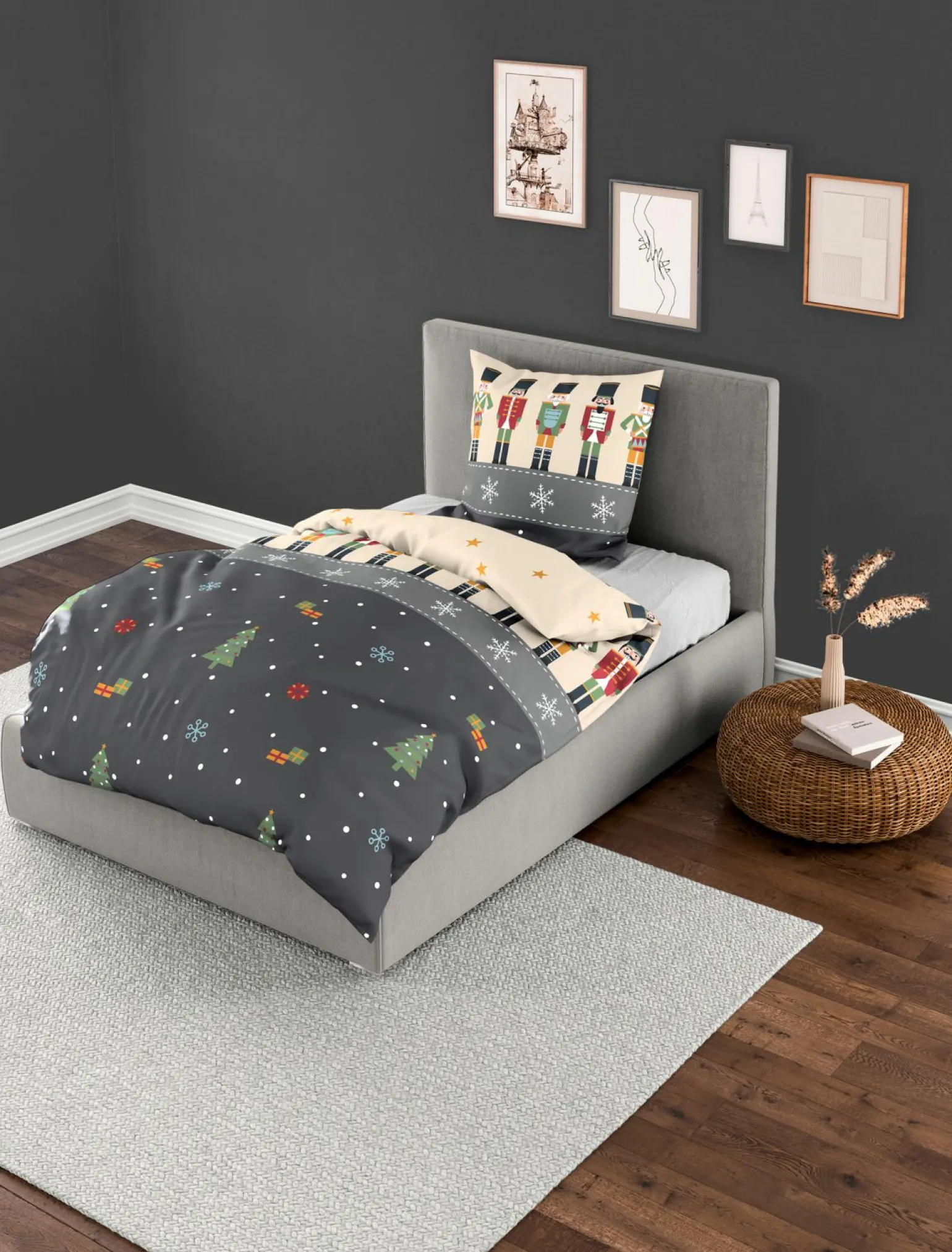 Grafit Biber-Bettwäsche Schwarz