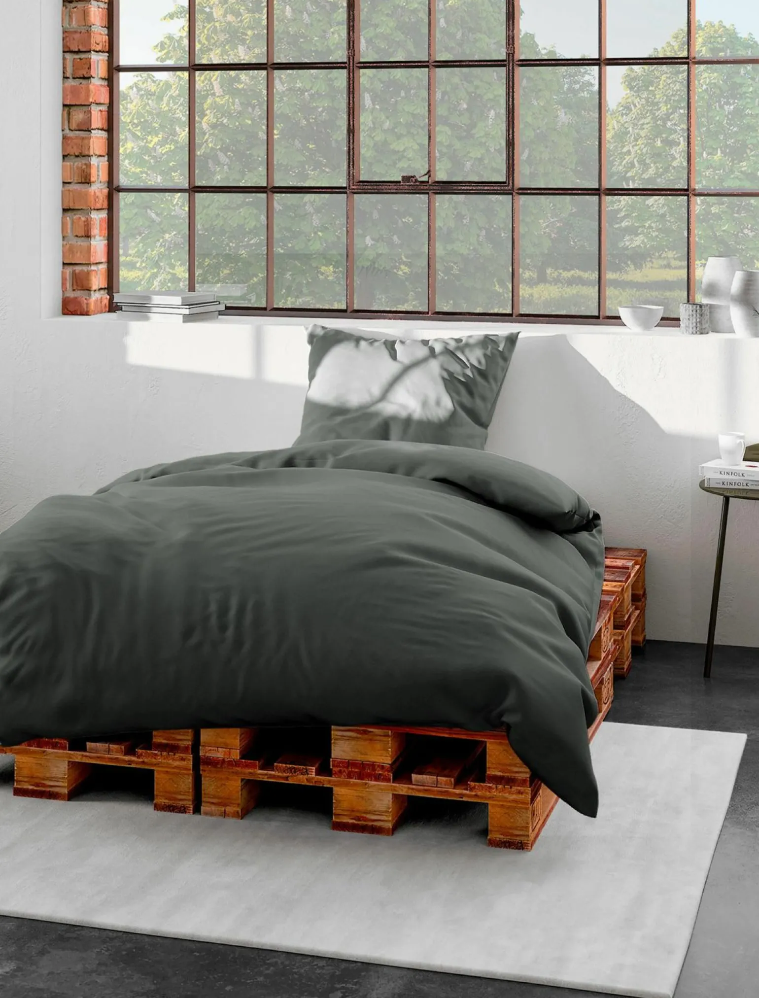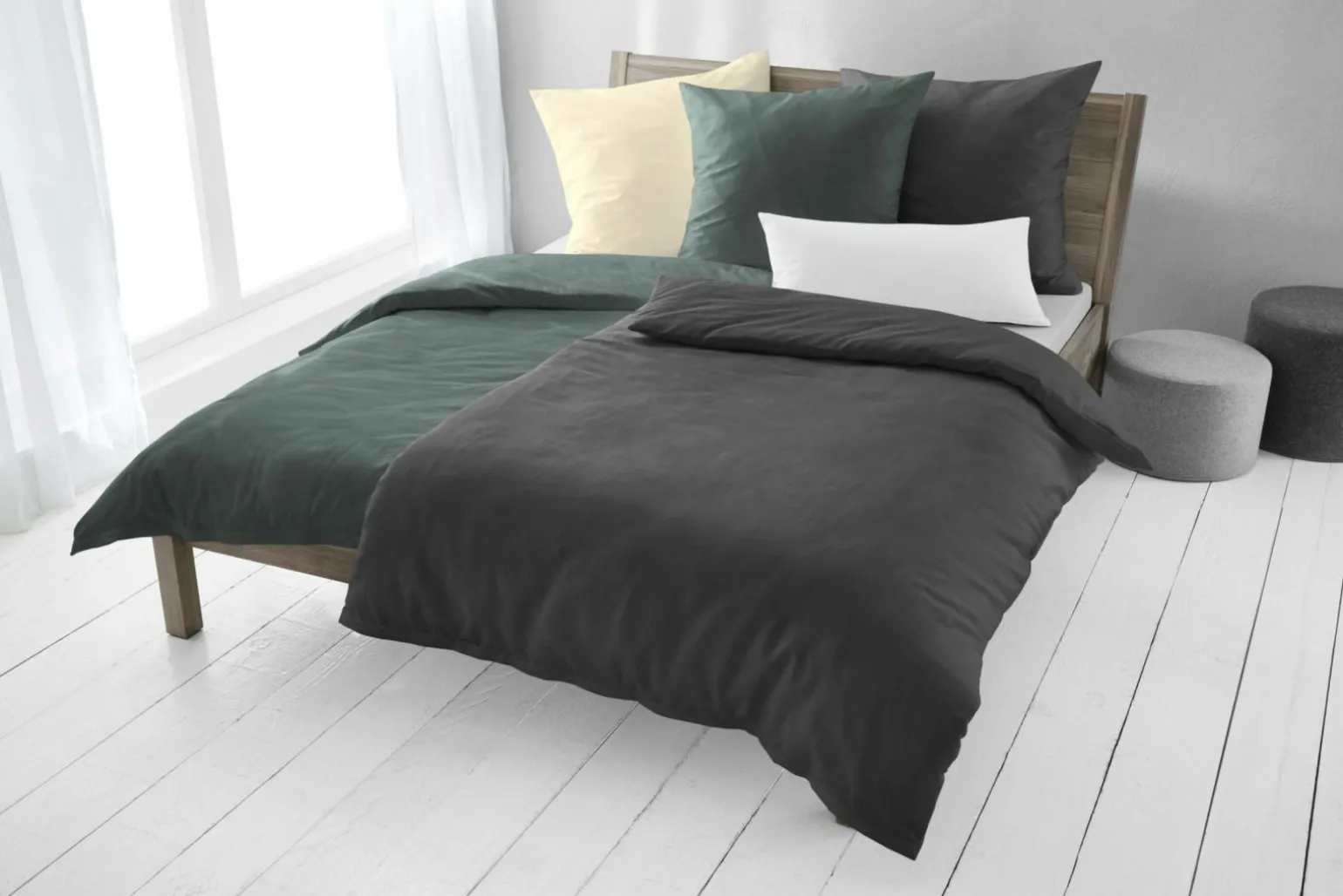 Uni anthrazit Biber-Bettwäsche Baumwolle