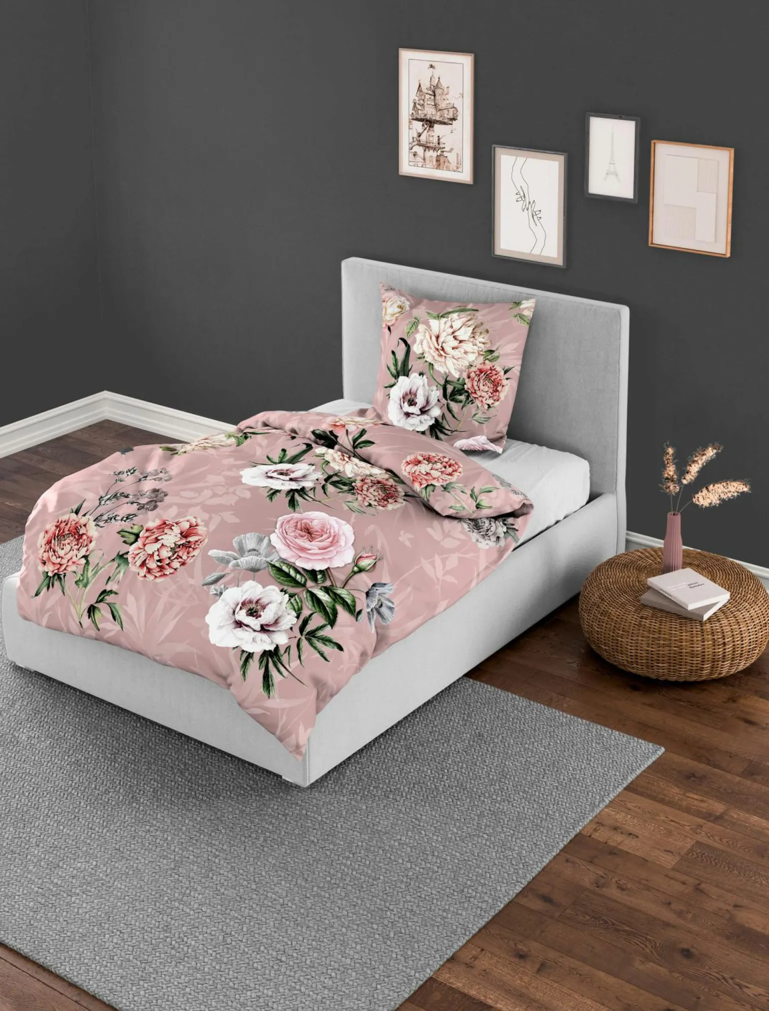 Erleben Sie luxuriösen Schlafkomfort mit der Blumen rosa Mako-Satin-Bettwäsche in der eleganten Farbe Rot. Gefertigt aus 100% hochwertiger Baumwolle, bietet diese Bettwäsche ein weiches und angenehmes Hautgefühl. Die großzügigen Maße von 135 cm Breite und 200 cm Länge sorgen dafür, dass Sie sich bequem einkuscheln können. Das exquisite Design mit zarten Blumenmustern verleiht Ihrem Schlafzimmer eine stilvolle und einladende Atmosphäre. Diese Bettwäsche ist die perfekte Wahl für alle, die Qualität und Ästhetik gleichermaßen schätzen. Verwöhnen Sie sich mit einem Hauch von Luxus.
