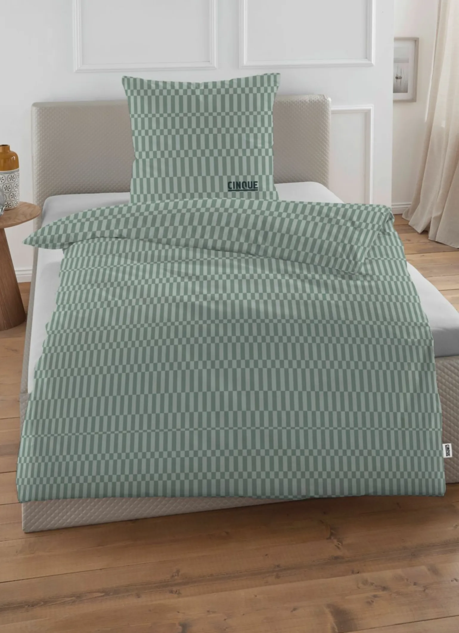 CINQUE-Satin-Bettwäsche Salbei Baumwolle