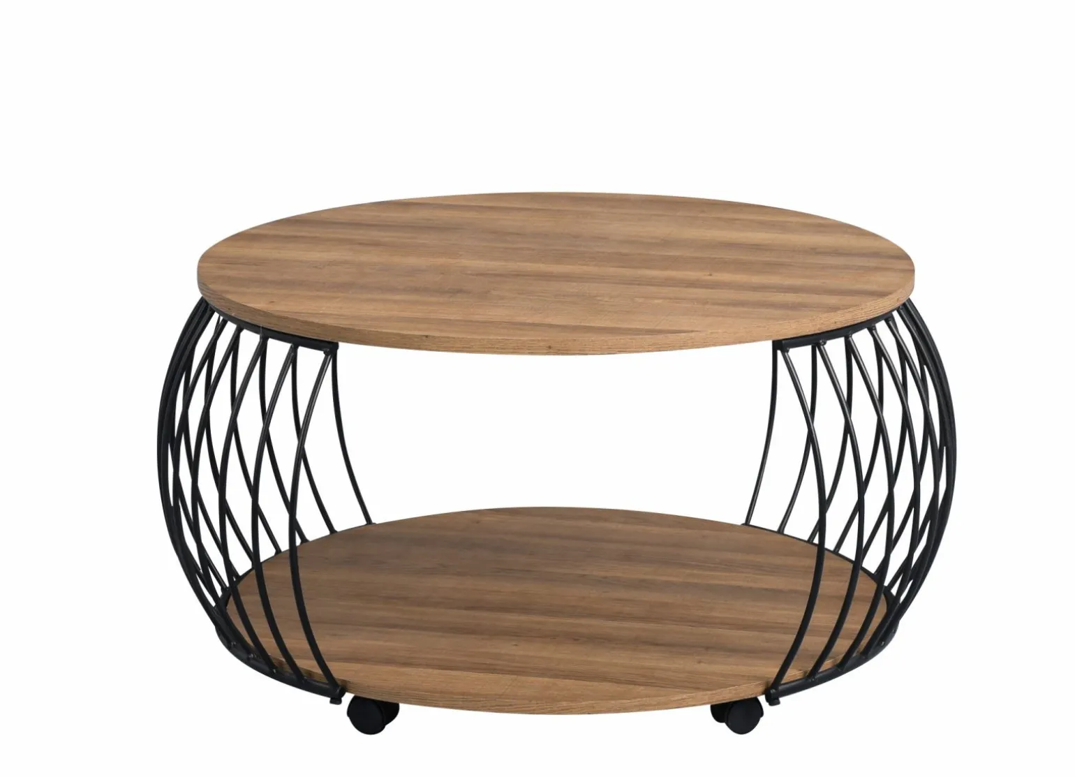 Der Olymp 2 Couchtisch ist die perfekte Ergänzung für Ihr modernes Wohnzimmer. Mit seiner runden Form und einem Durchmesser von 80 cm bietet er ausreichend Platz für Ihre täglichen Utensilien. Die Tischplatte aus hochwertigem Holzdekor in einem warmen Braunton sorgt für eine natürliche Optik, während das schwarze Metallgestell dem Tisch einen stilvollen und stabilen Charakter verleiht. Mit einer Höhe von 47 cm ist er ideal zum Entspannen und bietet eine maximale Belastbarkeit von 15 kg. Erleben Sie die Kombination aus Funktionalität und modernem Design.
