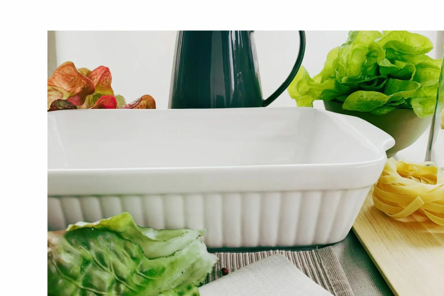 Erleben Sie Kochkunst auf höchstem Niveau mit der eleganten Classic Auflaufform in strahlendem Weiß. Gefertigt aus hochwertiger Keramik, vereint sie Funktionalität und Stil. Die großzügigen Dimensionen von 36 cm Länge, 20 cm Breite und 7,5 cm Höhe bieten ausreichend Platz für Ihre kulinarischen Kreationen. Diese rechteckige Auflaufform ist ideal für die Zubereitung von Lasagnen, Gratins oder anderen Ofengerichten. Die glatte Oberfläche sorgt für eine einfache Reinigung und ist zudem backofenfest, was Ihnen unzählige Möglichkeiten in der Küche eröffnet. Gestalten Sie Ihre Mahlzeiten mit dieser zeitlosen Auflaufform.