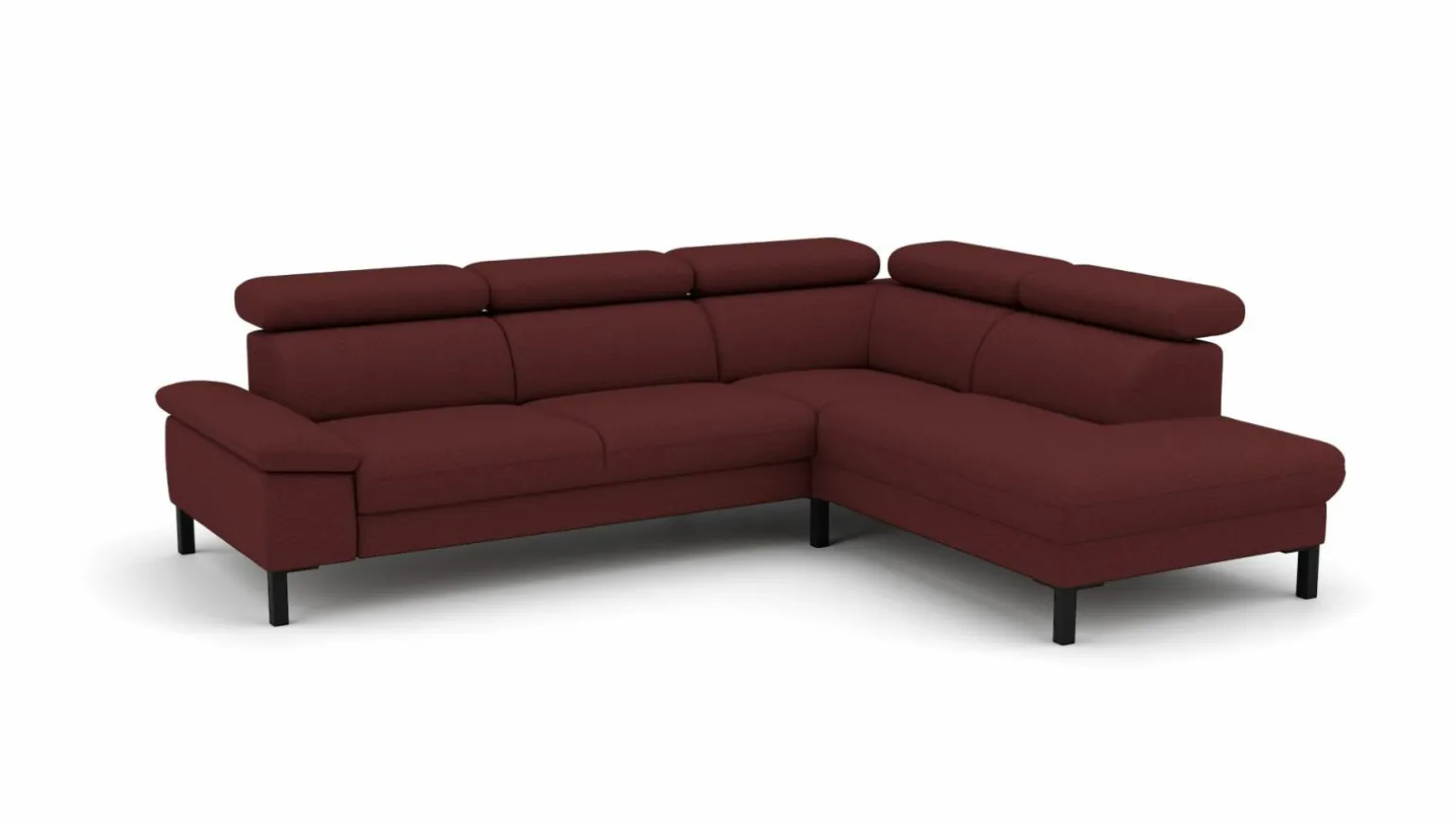 Erleben Sie modernen Komfort und stilvolles Design mit der Eckgarnitur Elke. Diese großzügige Sitzgelegenheit in einem lebhaften Rot bietet Platz für bis zu vier Personen und ist ideal für gesellige Abende oder entspannte Stunden. Der hochwertige Stoffbezug und der Echtrücken sorgen für ein angenehmes Sitzgefühl und eine ansprechende Optik von jeder Seite. Mit einer Sitzhöhe von 46 cm und einer verstellbaren Gesamthöhe von 79 bis 93 cm passt sich dieses Möbelstück Ihren Bedürfnissen an. Die robusten Metallfüße verleihen der Garnitur Stabilität und einen modernen Touch. Perfekt für Ihr zeitgemäßes Wohnzimmer.