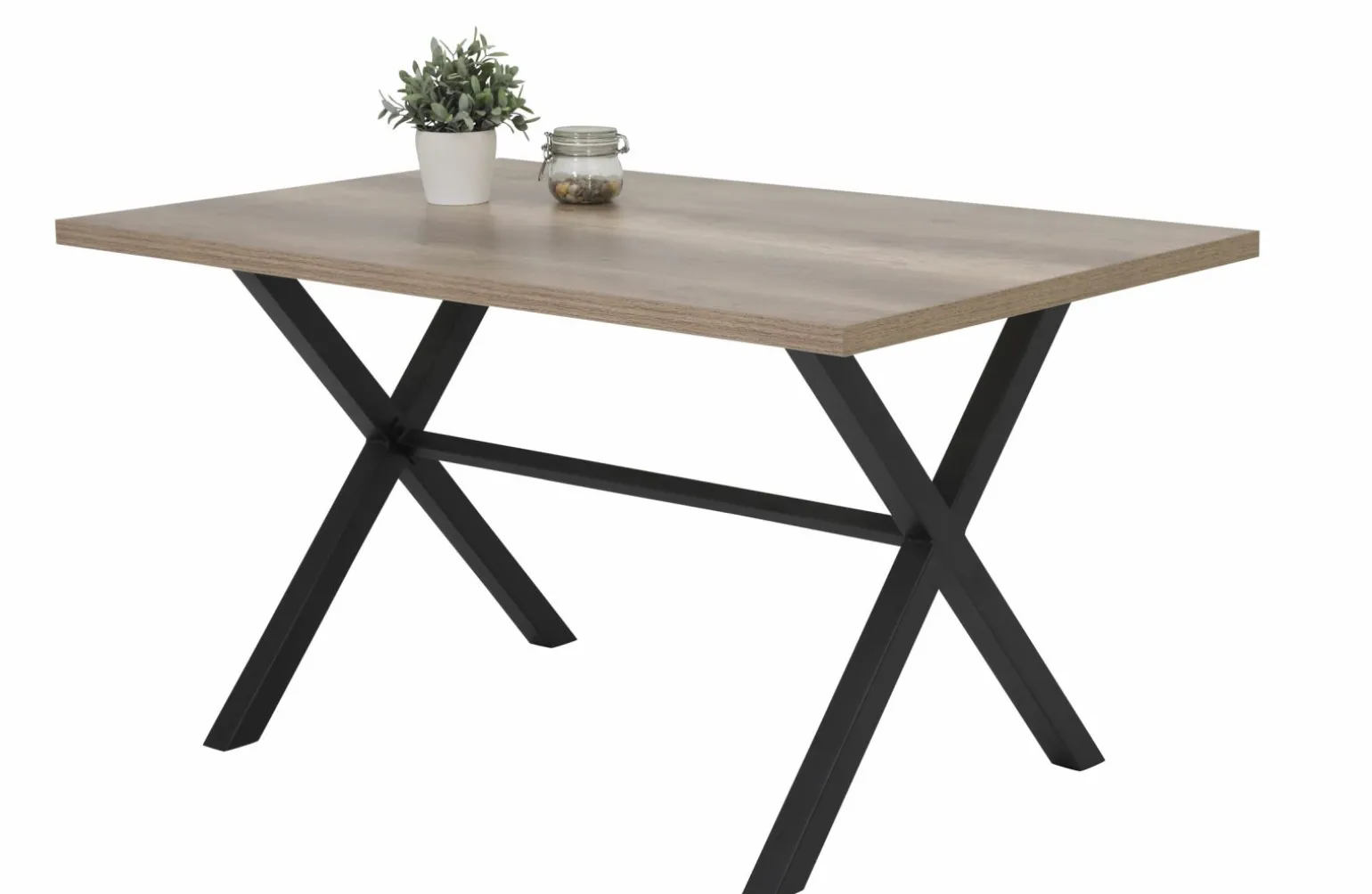 Der Bonny Esstisch in elegantem Braun kombiniert ein modernes Design mit funktionaler Ästhetik. Mit einer Höhe von 75 cm und einer Breite von 140 cm bietet dieser rechteckige Tisch ausreichend Platz für gemütliche Mahlzeiten und gesellige Zusammenkünfte. Die Tischplatte aus robustem Holzfaserwerkstoff besticht durch ihre Langlebigkeit und Pflegeleichtigkeit. Das graue Gestell in X-Form aus Metall verleiht dem Tisch nicht nur Stabilität, sondern auch einen stilvollen Akzent. Perfekt für jedes Esszimmer, fügt sich dieser Tisch nahtlos in verschiedene Einrichtungsstile ein und bietet hohen Komfort und Qualität.