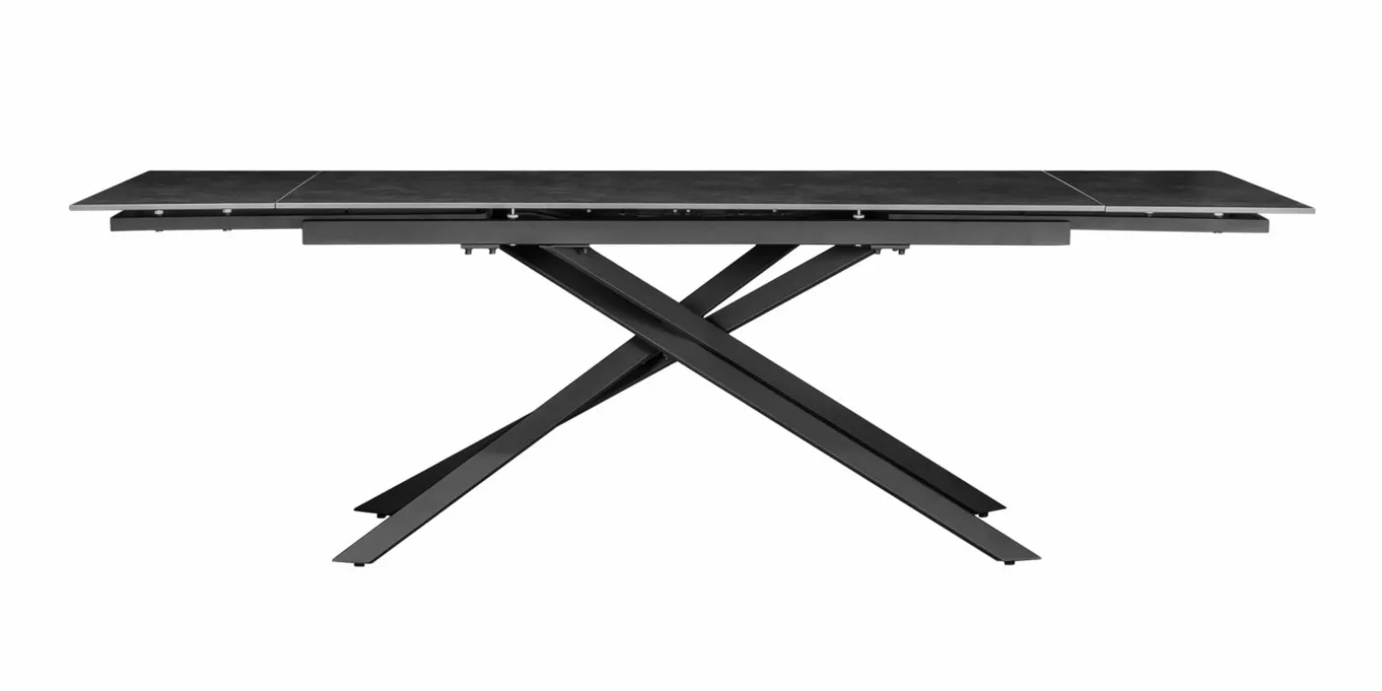 Der Kadiz Esstisch in stilvollem Grau verbindet modernes Design mit praktischer Funktionalität. Mit einer Breite von 240 cm und einer Tiefe von 90 cm bietet er ausreichend Platz für gesellige Runden. Der Tisch ist ausziehbar und passt sich flexibel Ihren Platzbedürfnissen an. Die Sitzhöhe von 51 cm und die Sitztiefe von 47 cm sorgen für optimalen Komfort. Das schwarze Stativgestell aus Metall verleiht dem Tisch Stabilität und einen zeitgemäßen Look. Dieser drehbare Tisch ist die perfekte Ergänzung für ein stilvolles Esszimmer.