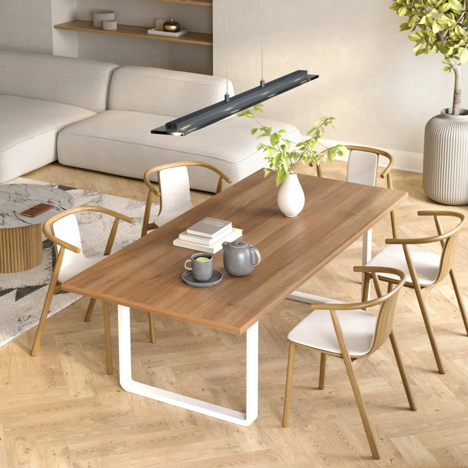 Die Torvi LED-Pendelleuchte in elegantem Grau vereint modernes Design mit funktionaler Beleuchtung. Gefertigt aus hochwertigem Metall, bietet diese stilvolle Leuchte eine robuste und langlebige Lösung für Ihr Zuhause oder Büro. Mit einer beeindruckenden Länge von 88 cm passt die Pendelleuchte perfekt über Esstische, Kücheninseln oder Arbeitsbereiche, wo sie nicht nur für ausreichend Licht sorgt, sondern auch als dekoratives Element beeindruckt. Die vier Leuchtmittel verteilen das Licht gleichmäßig und schaffen eine angenehme Atmosphäre, die jeden Raum aufwertet. Setzen Sie auf zeitlose Eleganz und innovative Lichttechnik.