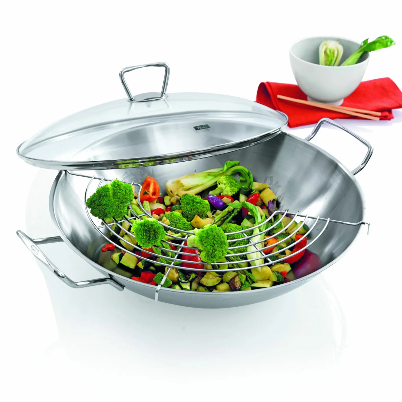 Fissler Wok 36cm m. Deckel silberfarben