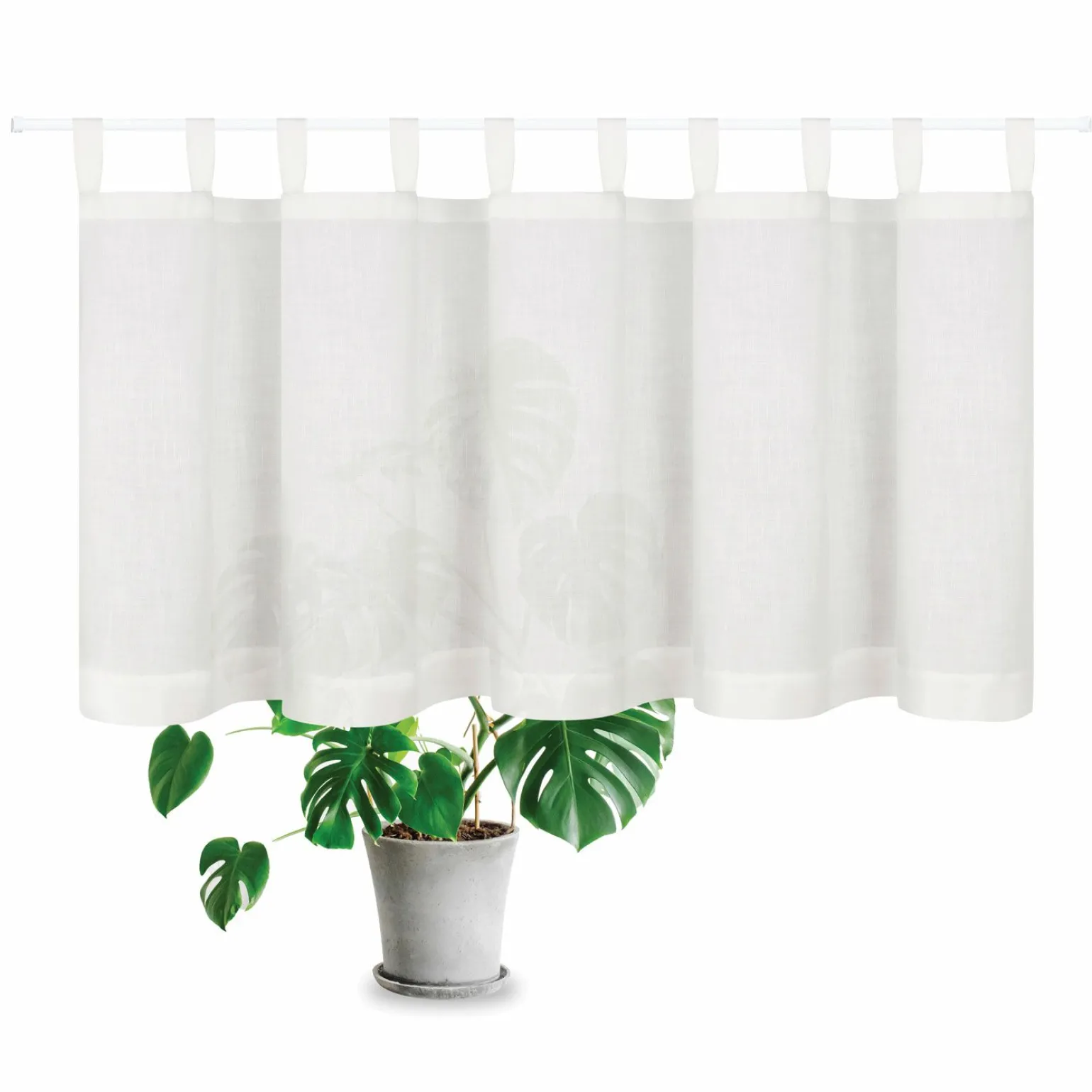 Die Uni offwhite Schlaufen-Bistrogardine in reiner Baumwolle ist die ideale Wahl, um Ihrem Raum einen Hauch von Eleganz und Frische zu verleihen. Mit einer Breite von 150 cm und einer Länge von 50 cm passt sie perfekt in verschiedene Fenstergrößen und sorgt für eine harmonische Lichtdurchflutung. Das schlichte Design in Offwhite fügt sich nahtlos in jedes Interieur ein und bietet eine stilvolle Lösung für Ihre Fensterdekoration. Dank der hochwertigen Verarbeitung und der natürlichen Materialwahl ist die Gardine sowohl langlebig als auch pflegeleicht.