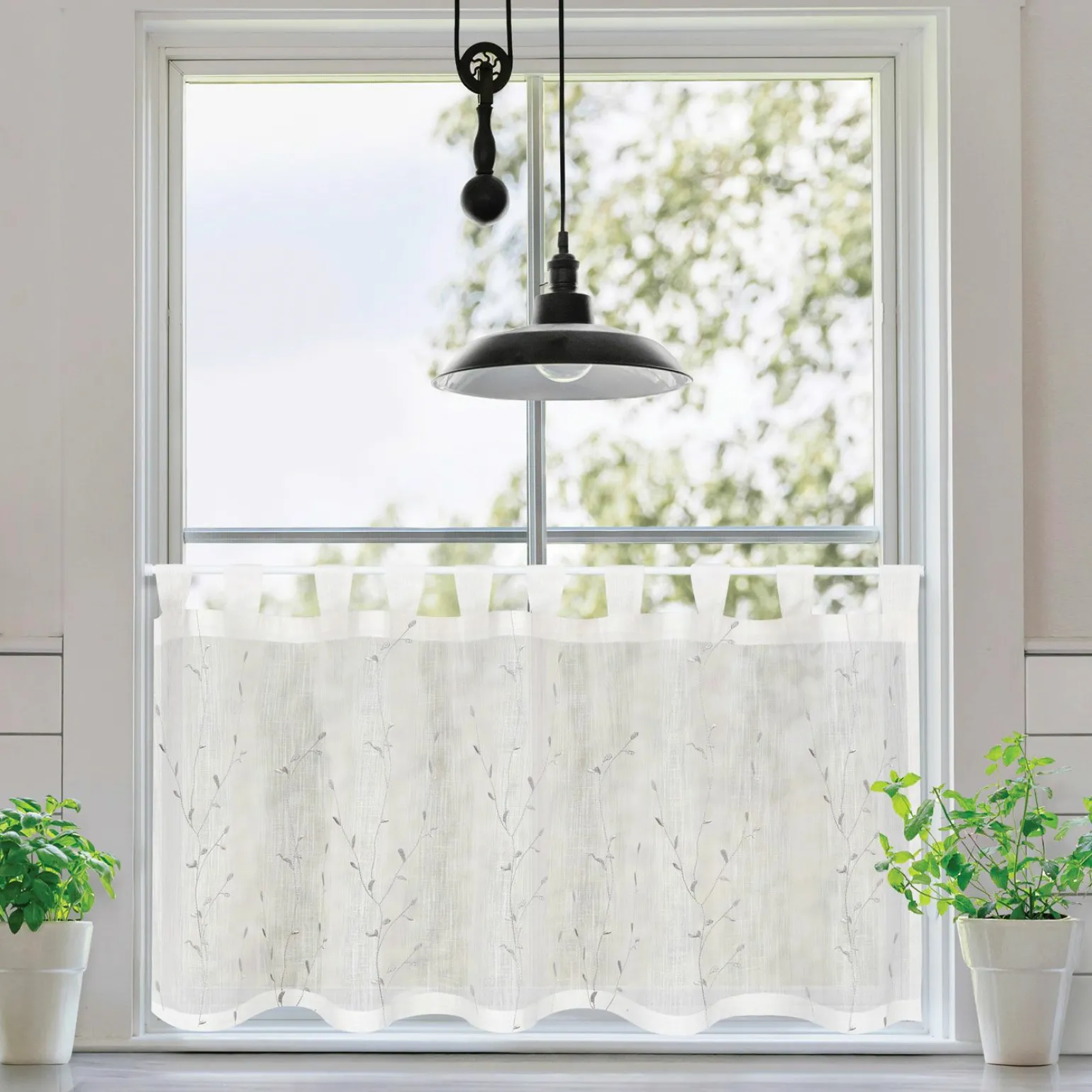 Äste bestickt Schlaufen-Bistrogardine Baumwolle