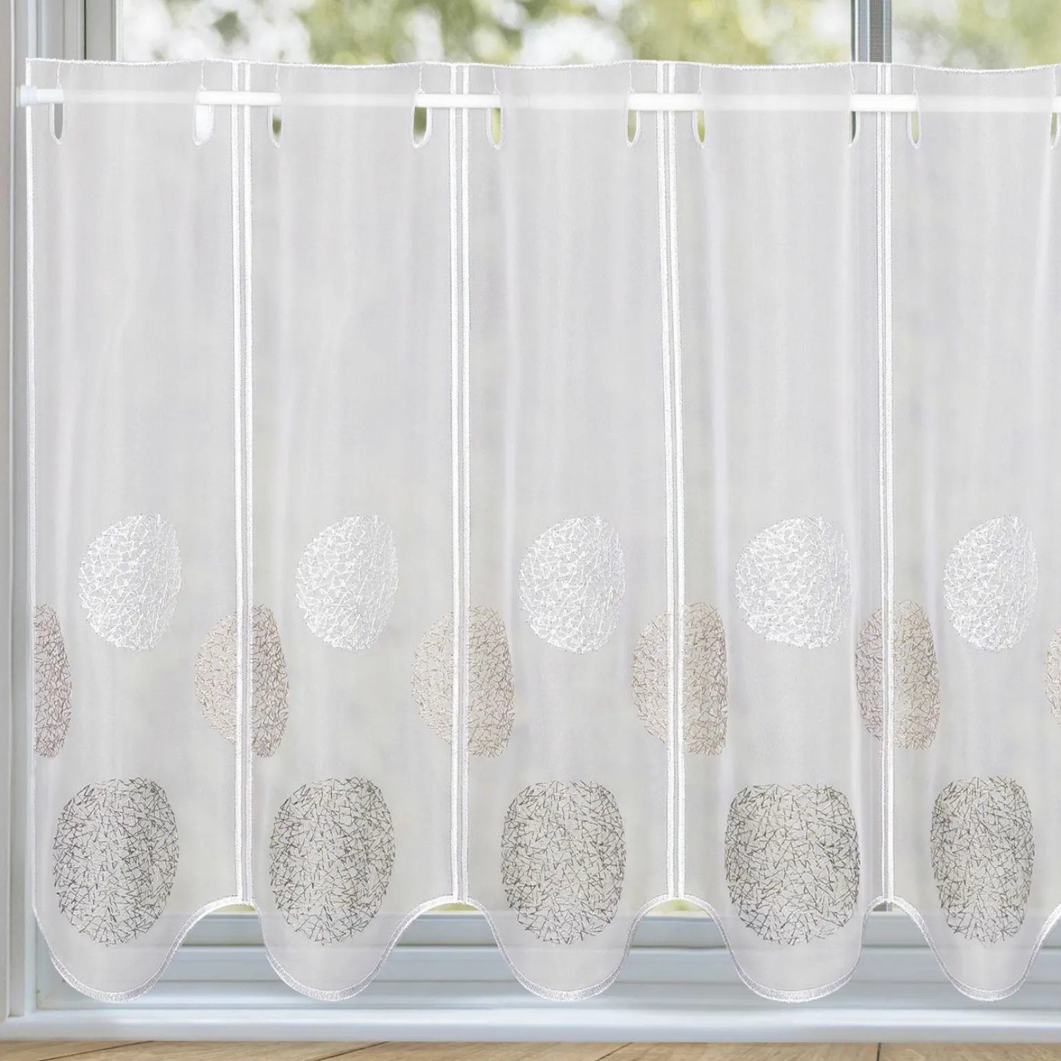 Erleben Sie stilvolle Fenstergestaltung mit der Elena Stick-Bistrogardine in elegantem Grau. Gefertigt aus hochwertigen Kunstfasern, bietet diese Gardine sowohl Langlebigkeit als auch Pflegeleichtigkeit. Mit einer Breite von 145 cm und einer Tiefe von 45 cm eignet sie sich ideal für kleinere Fenster und verleiht jedem Raum eine dezente Eleganz. Die Gardine besteht aus 100% Polyester, was für eine leichte Reinigung sorgt und gleichzeitig eine feine, strukturierte Optik bietet. Diese Gardine ist die perfekte Wahl, um Ihre Fenster mit einem modernen, attraktiven Akzent zu verschönern.