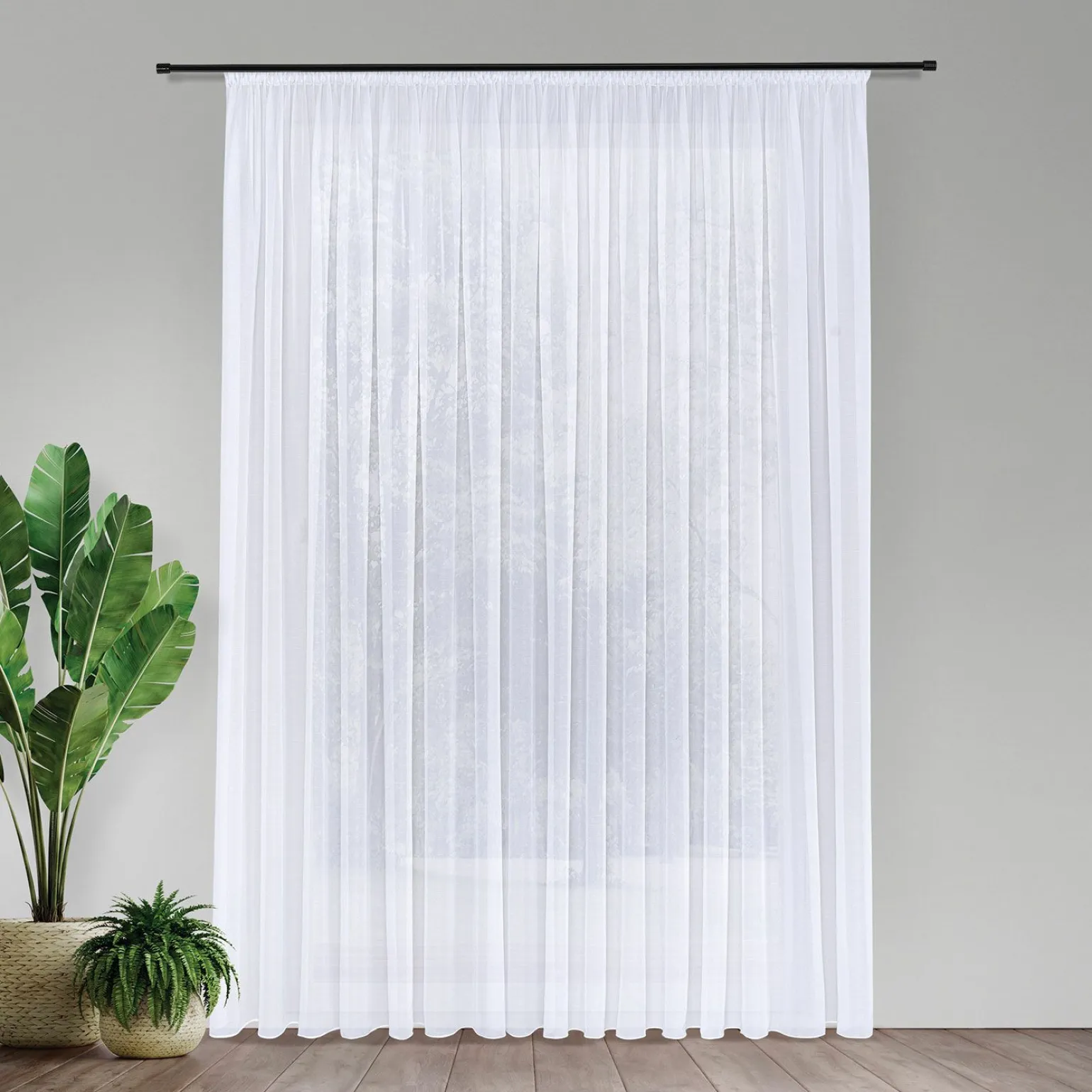 Verleihen Sie Ihrem Wohnraum mit dem stilvollen Store Alina ein elegantes Ambiente. Dieser weiße Vorhang besticht durch seine großzügige Breite von 300 cm und eine Länge von 245 cm, die ihm eine beeindruckende Präsenz verleihen. Hergestellt aus hochwertigen Kunstfasern, besteht er aus 100% Polyester, was nicht nur für eine ansprechende Optik, sondern auch für Langlebigkeit und Pflegeleichtigkeit sorgt. Das Smokband ermöglicht eine einfache Anbringung und Anpassung an Ihre Fensterdekoration. Mit diesem Vorhang schaffen Sie eine freundliche, lichtdurchflutete Atmosphäre in Ihrem Zuhause.