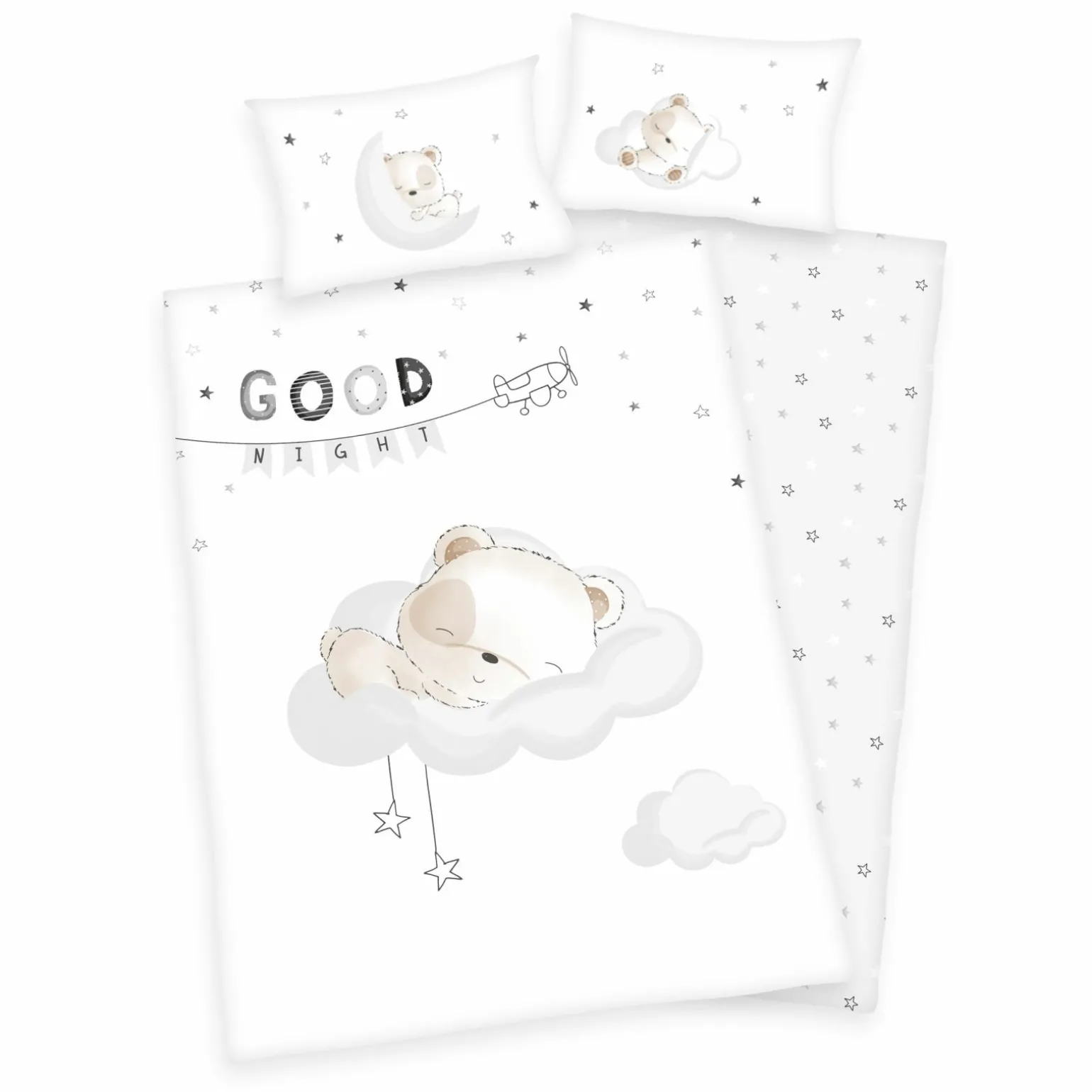 Baby Bettwäsche Weiß Grau