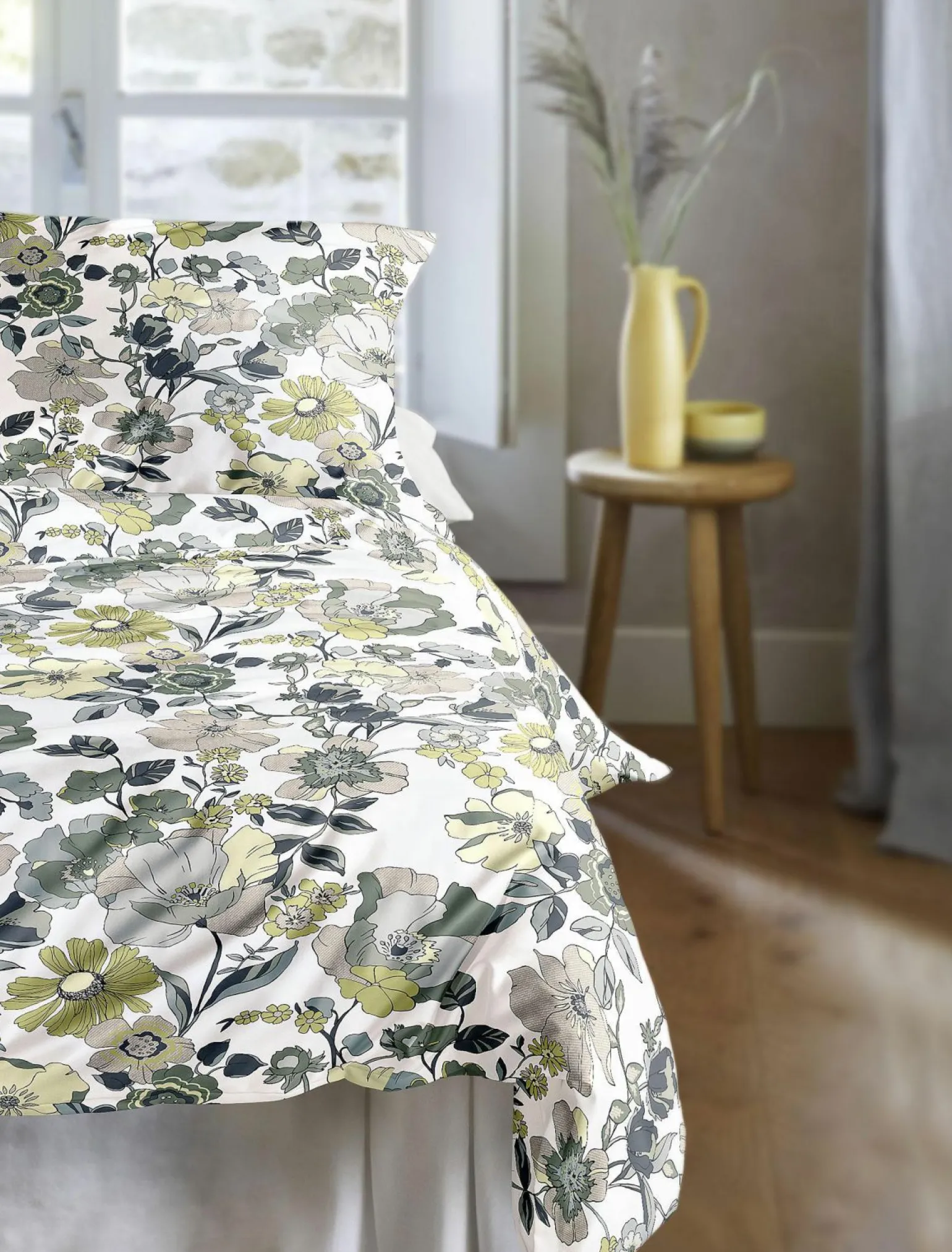 Wave Satin-Bettwäsche Salbei Baumwolle