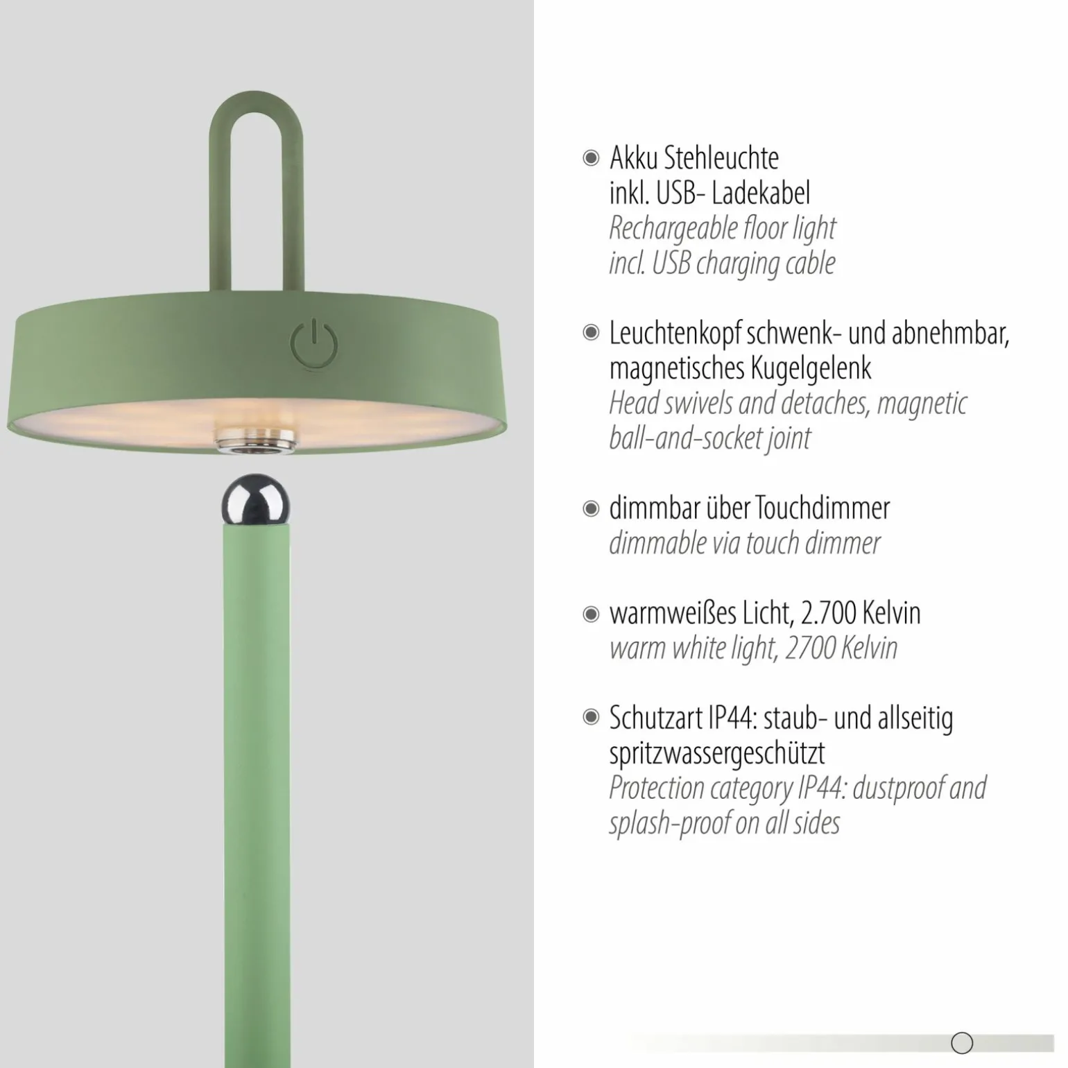 JUST LIGHT LED-Akku-Stehleuchte 1flg grün