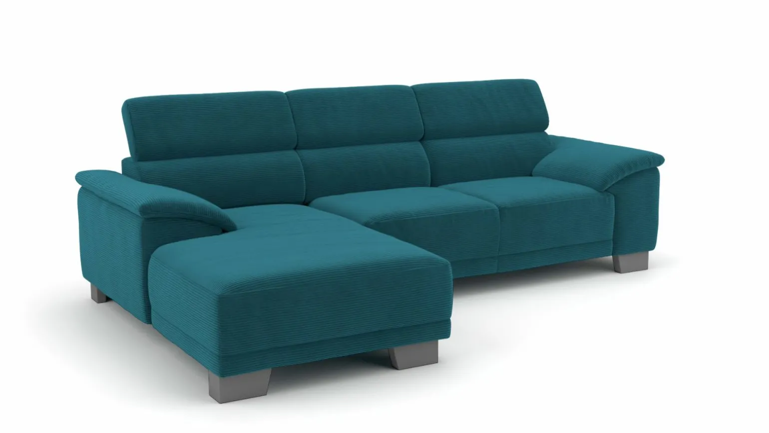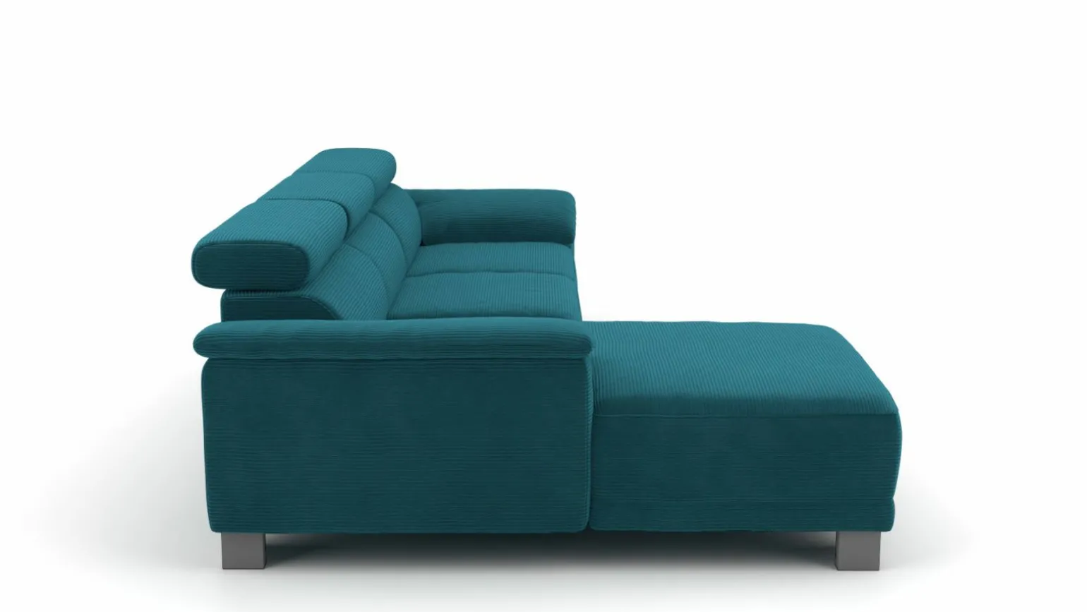 Diese moderne Eckgarnitur Akron in stilvollem Blau ist die perfekte Ergänzung für jedes zeitgemäße Wohnzimmer. Mit einer großzügigen Breite von 270 cm und einer Tiefe von 174 cm bietet sie ausreichend Platz für bis zu vier Personen. Der weiche Stoffbezug sorgt für ein angenehmes Sitzgefühl, während die komfortable Sitzhöhe von 45 cm und die Sitztiefe von 57 cm optimalen Komfort bieten. Der Echtrücken ermöglicht es, die Garnitur frei im Raum zu platzieren. Die stabilen Metallfüße verleihen der Eckgarnitur ein elegantes Finish und garantieren Langlebigkeit.