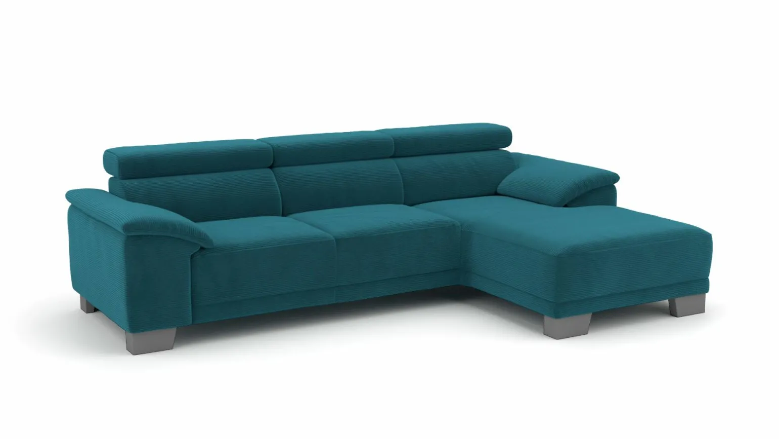 Die Akron Eckgarnitur in stilvollem Blau bringt modernen Komfort in Ihr Wohnzimmer. Mit großzügigen Maßen von 270 cm Breite und 174 cm Tiefe bietet sie Platz für vier Personen. Der hochwertige Stoff und der Echtrücken sorgen für eine ansprechende Optik, während die Sitzhöhe von 45 cm und die Sitztiefe von 57 cm optimalen Komfort bieten. Die Eckgarnitur steht stabil auf einem Gestell aus Metall, das die moderne Ästhetik unterstreicht. Die verstellbare Rückenhöhe von 79 bis 93 cm ermöglicht eine individuelle Anpassung an Ihre Bedürfnisse.
