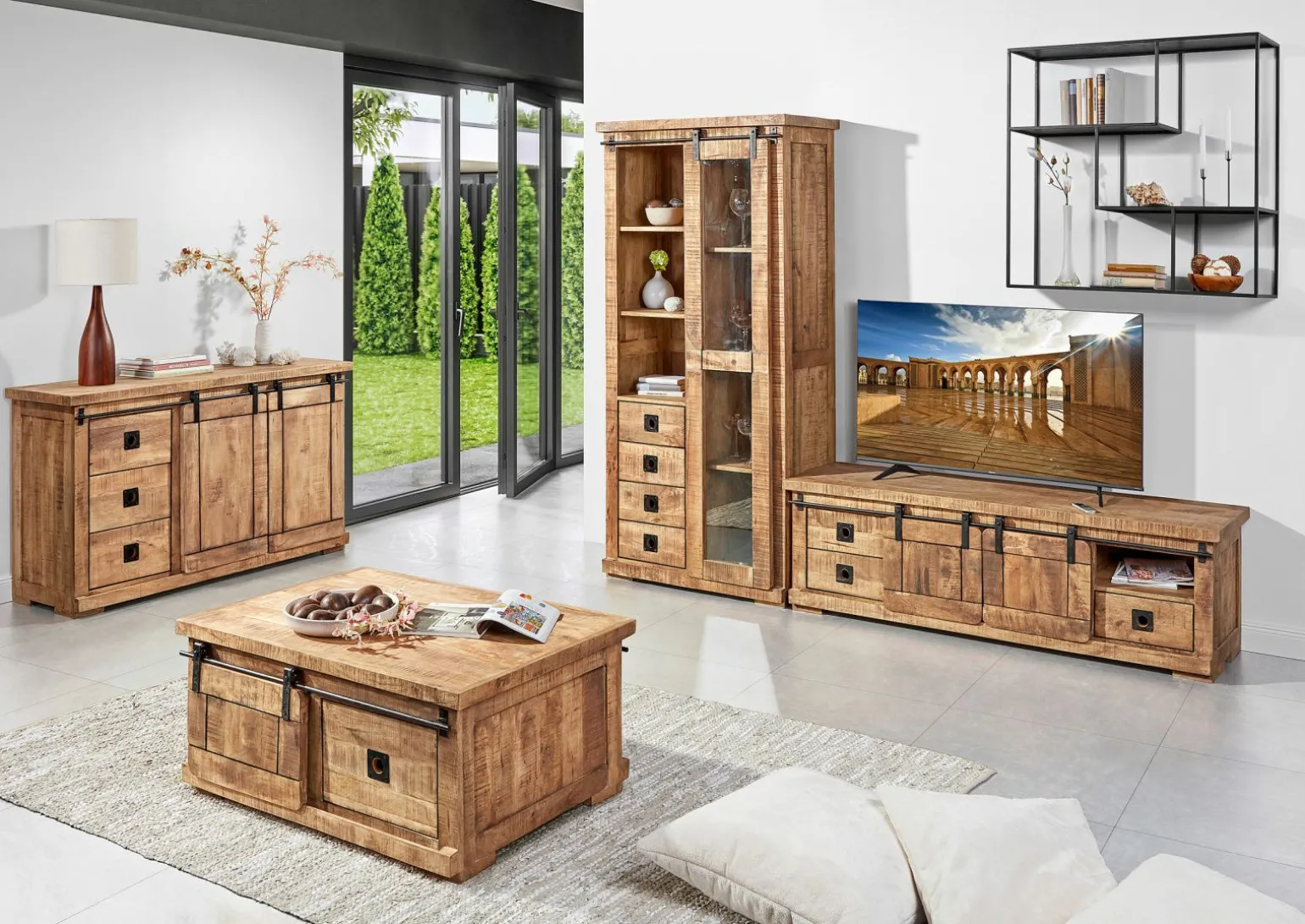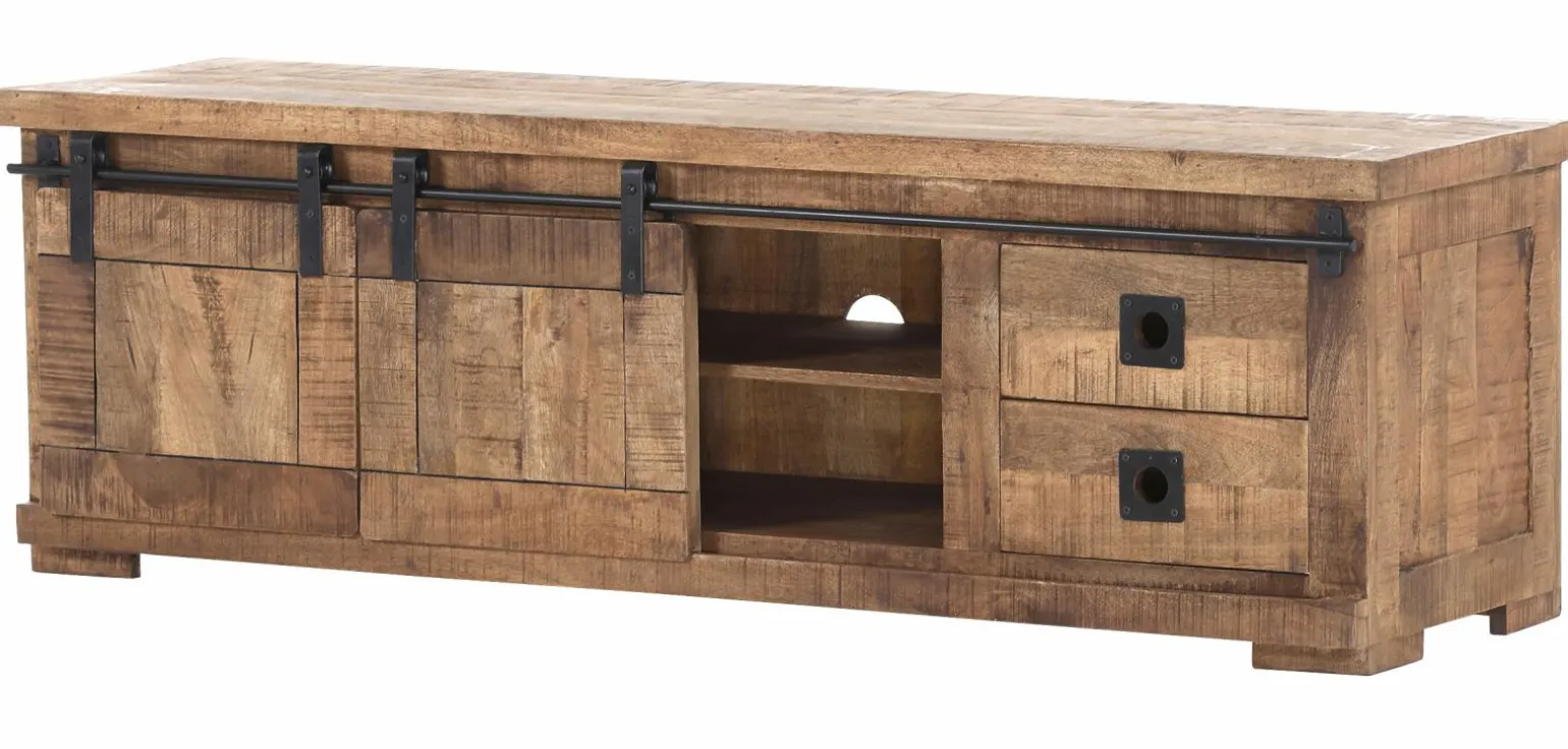 Erleben Sie pure Eleganz und Funktionalität mit dem Gotland Lowboard. Dieses stilvolle Möbelstück beeindruckt durch seine Kombination aus massivem Holz in einem warmen Braunton und einem robusten Gestell aus schwarzem Metall. Das harmonische Zusammenspiel dieser Materialien verleiht jedem Raum eine moderne und gleichzeitig gemütliche Atmosphäre. Die solide Verarbeitung sorgt für Langlebigkeit und Stabilität, sodass Sie lange Freude an diesem Lowboard haben werden. Ideal für die Präsentation Ihrer Mediengeräte oder Dekorationsobjekte, fügt es sich nahtlos in verschiedene Einrichtungsstile ein.